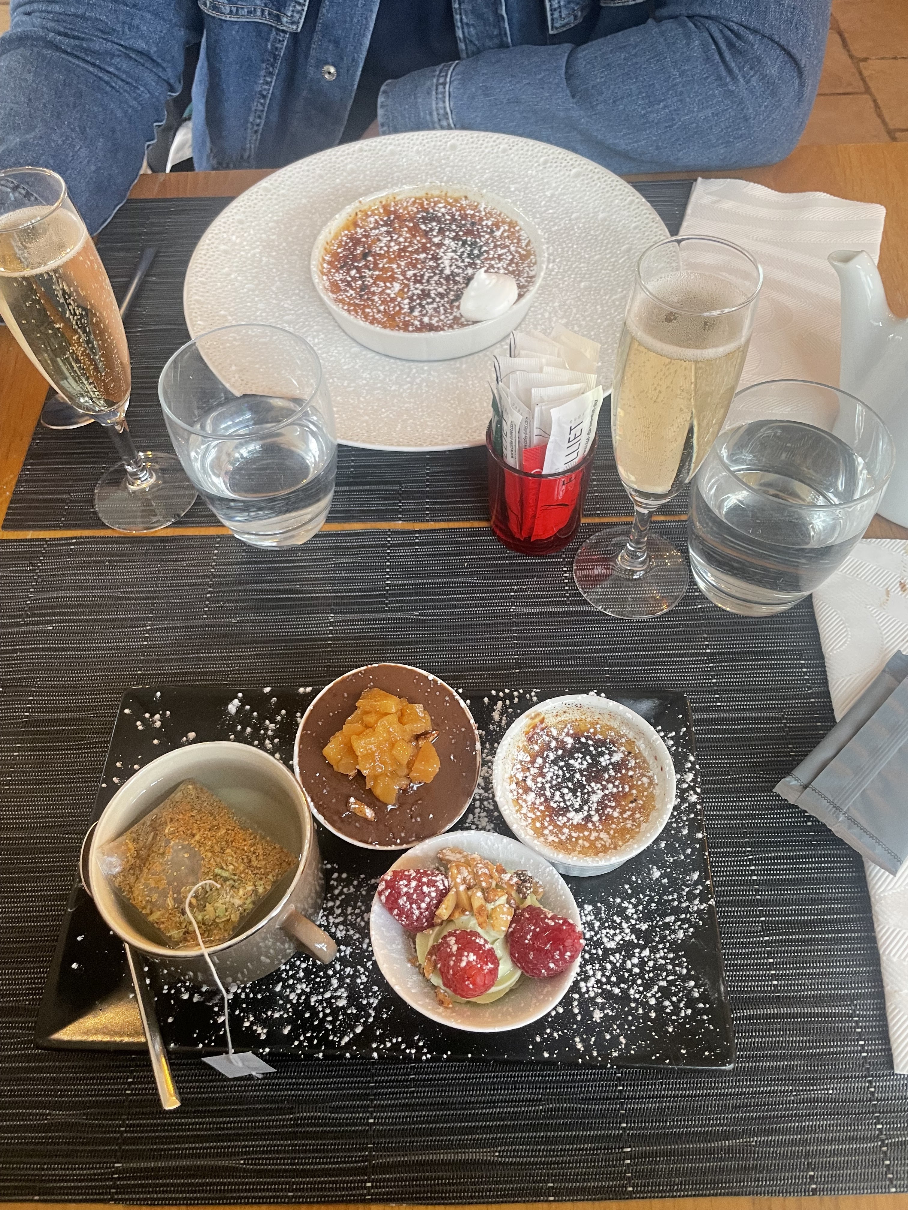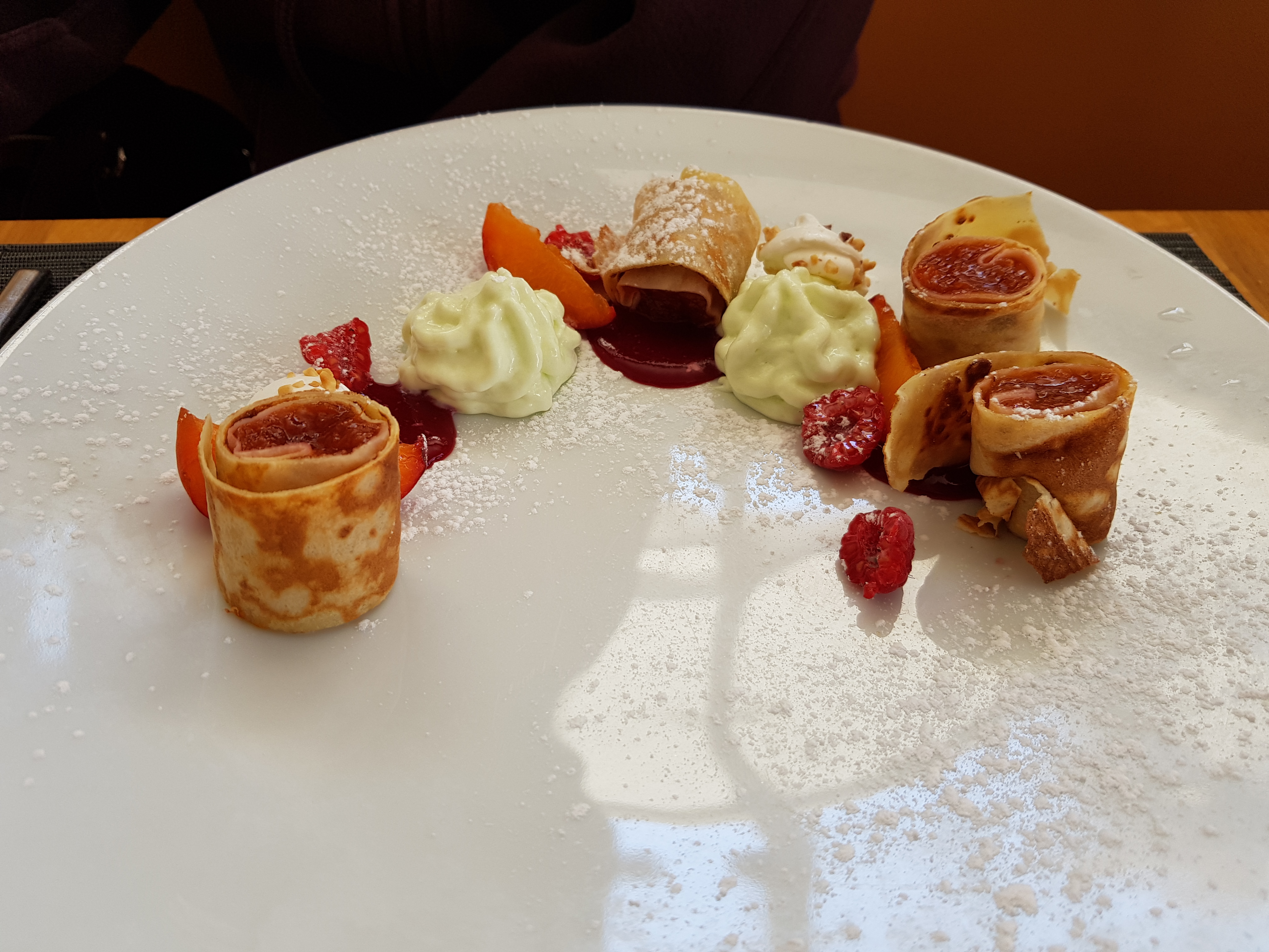Repas romantique pour l'anniversaire de monsieur. Il a adoré ! Gros coup de coeur sur l'entrée à base de canard et le dessert à base de crêpes !