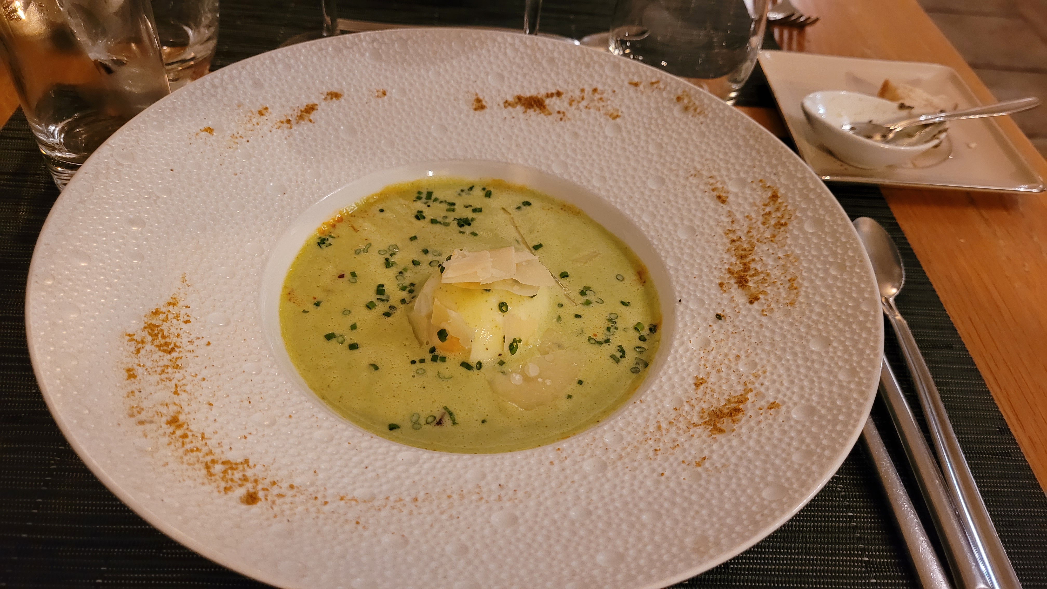 Nous ne pouvons pas dire que nous avons mal mangé mais 50e le menu c’est beaucoup beaucoup trop cher pour ce qui nous a été servi. Pour ce type de menu on s’attend à avoir des petites mises en bouche. L’intérieur du restaurant manque vraiment de raffinement, un peu trop sobre à mon goût. Très sympa que le chef passe en fin de service