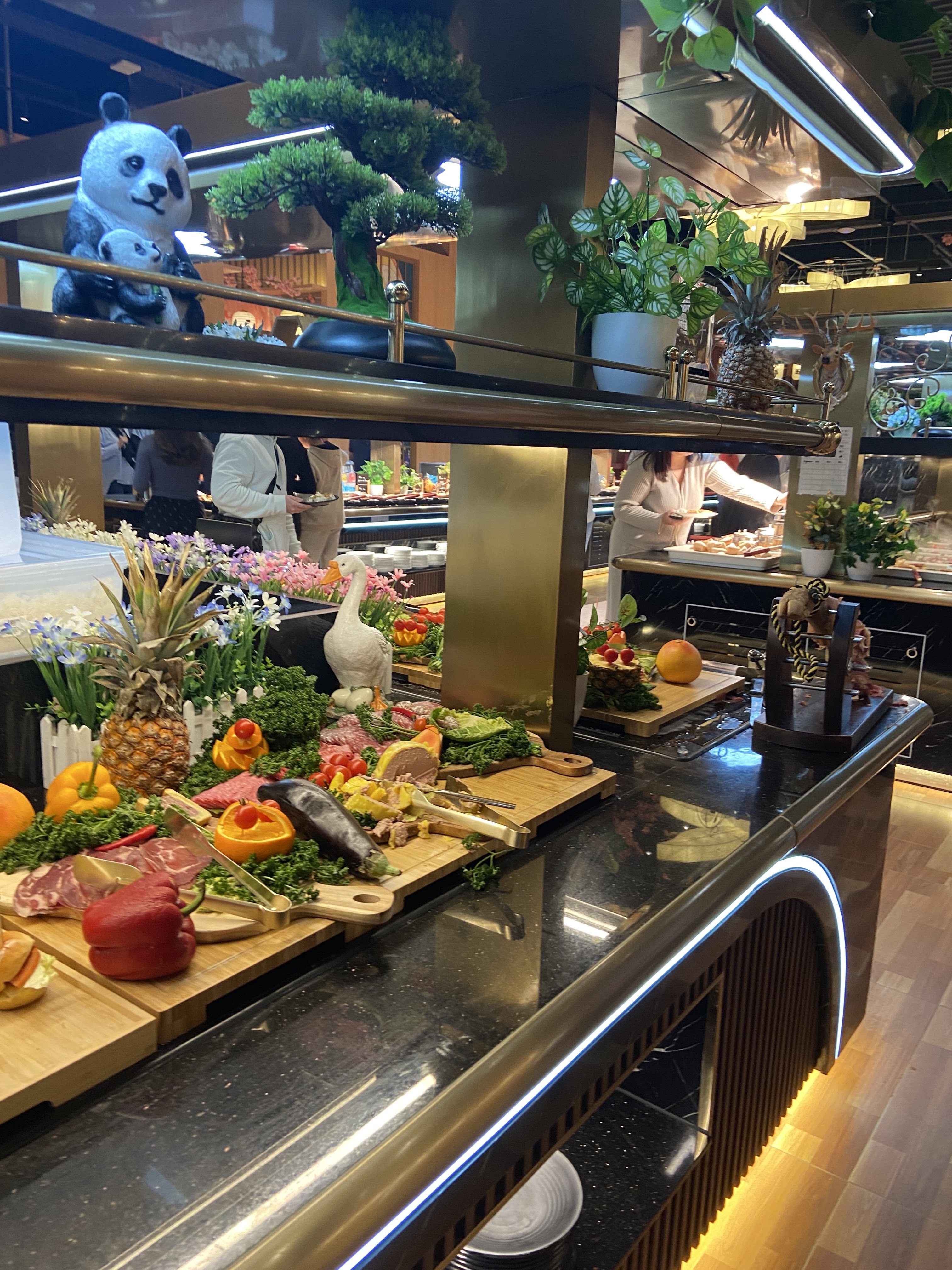 Je mets 4 étoile à cause de l'organisation, à l'arrivée on trouve un fil d'attente énorme arrivant à 30 minutes en moyenne, j'ai essayé de joindre le restaurant pendant 3 jours avant venir pour pouvoir réserver une table (je suggère un system en ligne qui permet de faire une réservation et fluidifier l'attente dehors). Finalement on est rentré pour être assise sur une petite table avec des passages très étroite malgré le faite qu'on avait une poussette de bébé. La nourriture était bon et bien desservie, les plats étaient renouvelés rapidement on pu goûter pas mal des choses, le décor et magnifique et jolie. Plutôt une bonne expérience, mais dommage qu'on a du mettre plus du temps à l'entrée et à la caisse que la vrai expérience en buffet et pouvoir manger tranquillement...