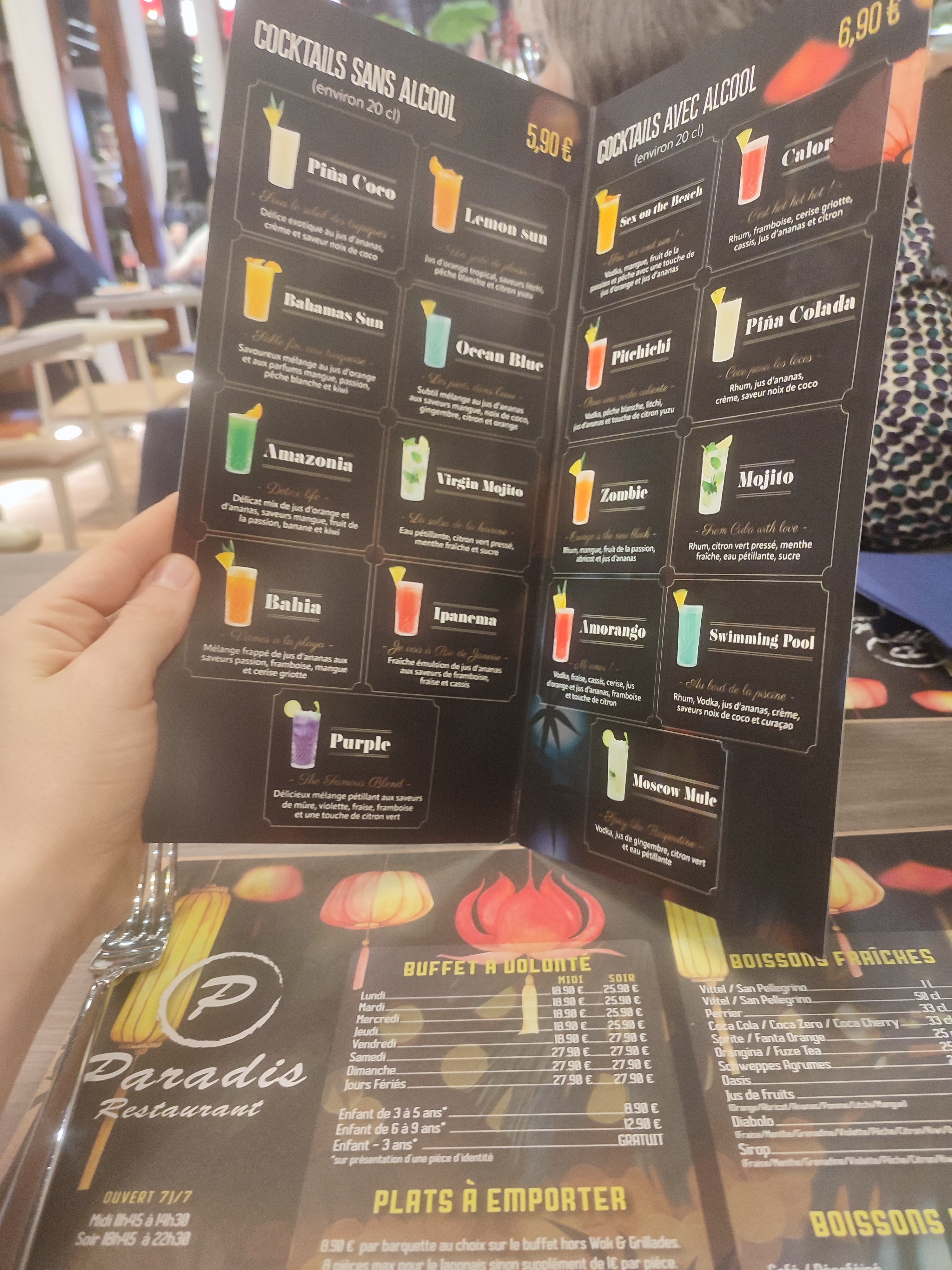 Le restaurant a ouvert le 1er mars 2024, j’y suis allée avec mon mari et mes enfants le 2 mars. Une superbe décoration, pas trop bruyant, un choix hallucinant avec différents buffets, japonais, français, indien, chinois. Un bon concept de restaurant à volonté. Les tarifs vont de 18€ à 27€ selon soir ou week-end. Vous pouvez venir suivre mes bonnes adresses et recettes sur Instagram @mimicuisine