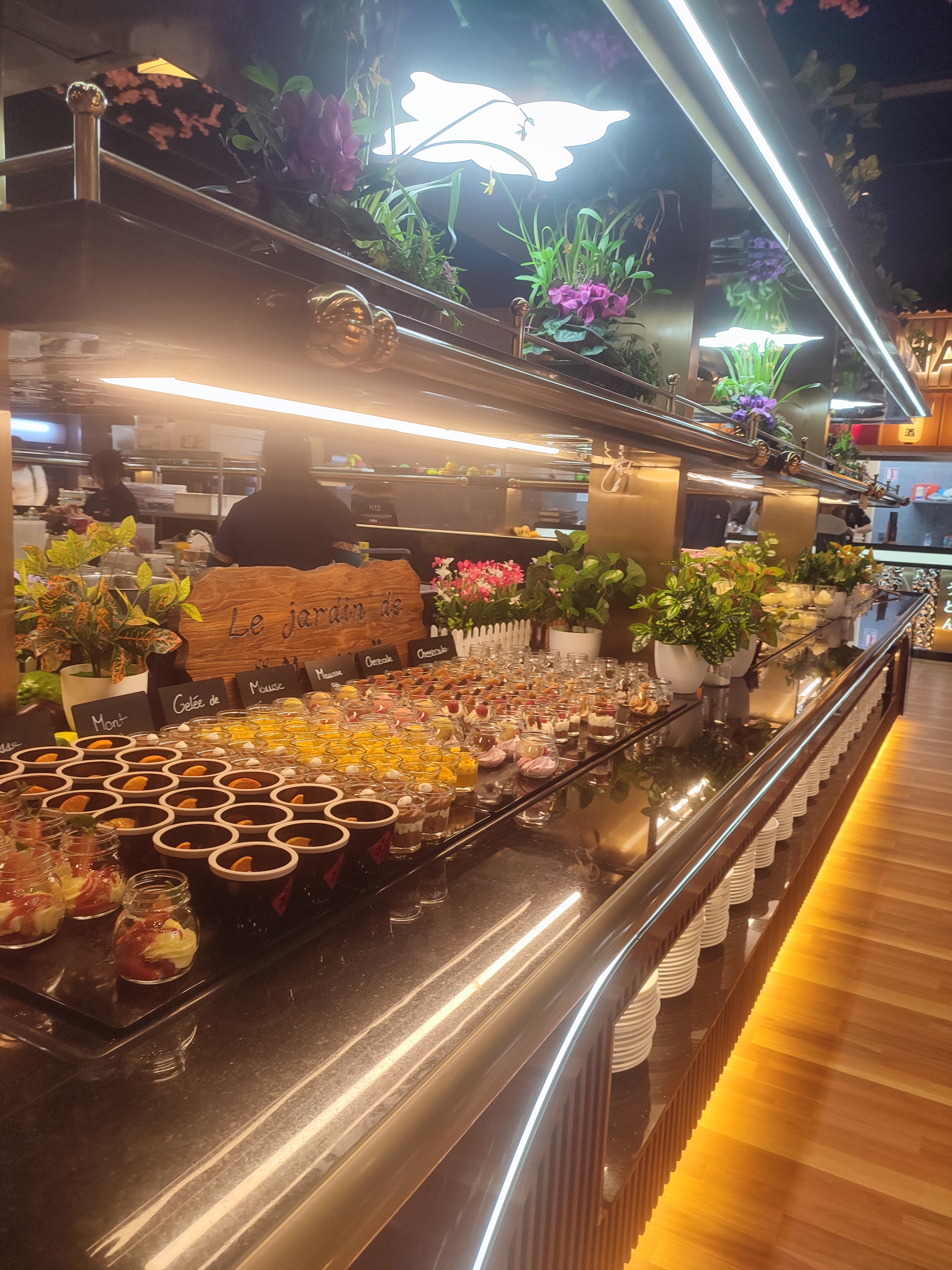 Très bel endroit, très bien décoré, salle divisée en nombreux espaces repas autour des buffets qui sont au centre de la salle, le personnel est agréable. La formule buffet à volonté est inépuisable tant les différents buffets sont nombreux. Il y en a vraiment pour tous les goûts ! Immense choix de sushis, mais manque quelques indications pour en connaître les saveurs. Grands choix de saveurs asiatiques, de plats divers ! Viande et poissons à cuisiner wok. Charcuterie, fromage, desserts, fruits frais. Il ne manque rien et on ne sait que prendre tant le choix est vaste. Je recommande vivement ce restaurant