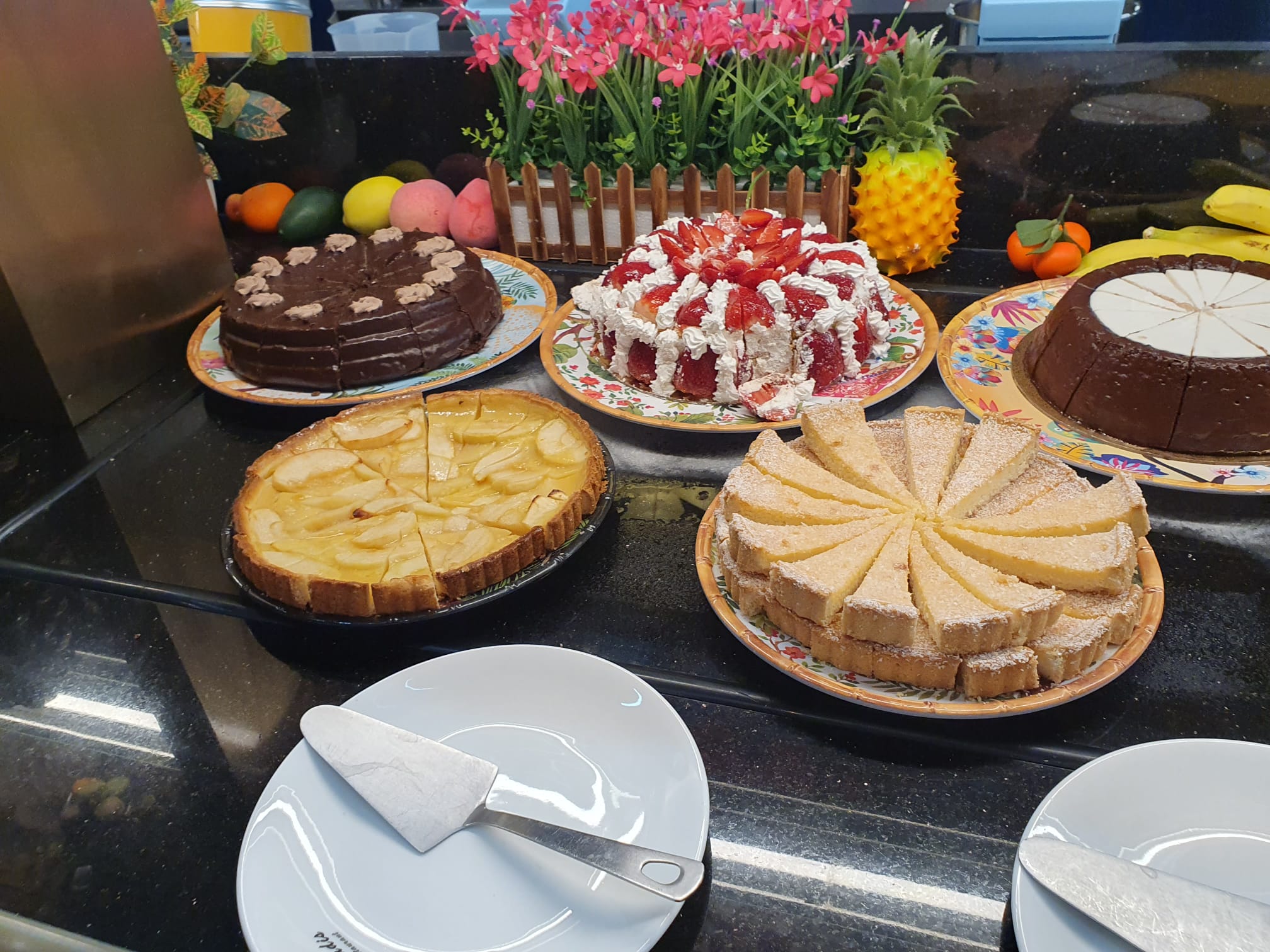 Cadre sympathique. Tres large choix de plats , tout parait appaitissant. Et pour 1 fois les fuits sont frais pour ce que j ai vu