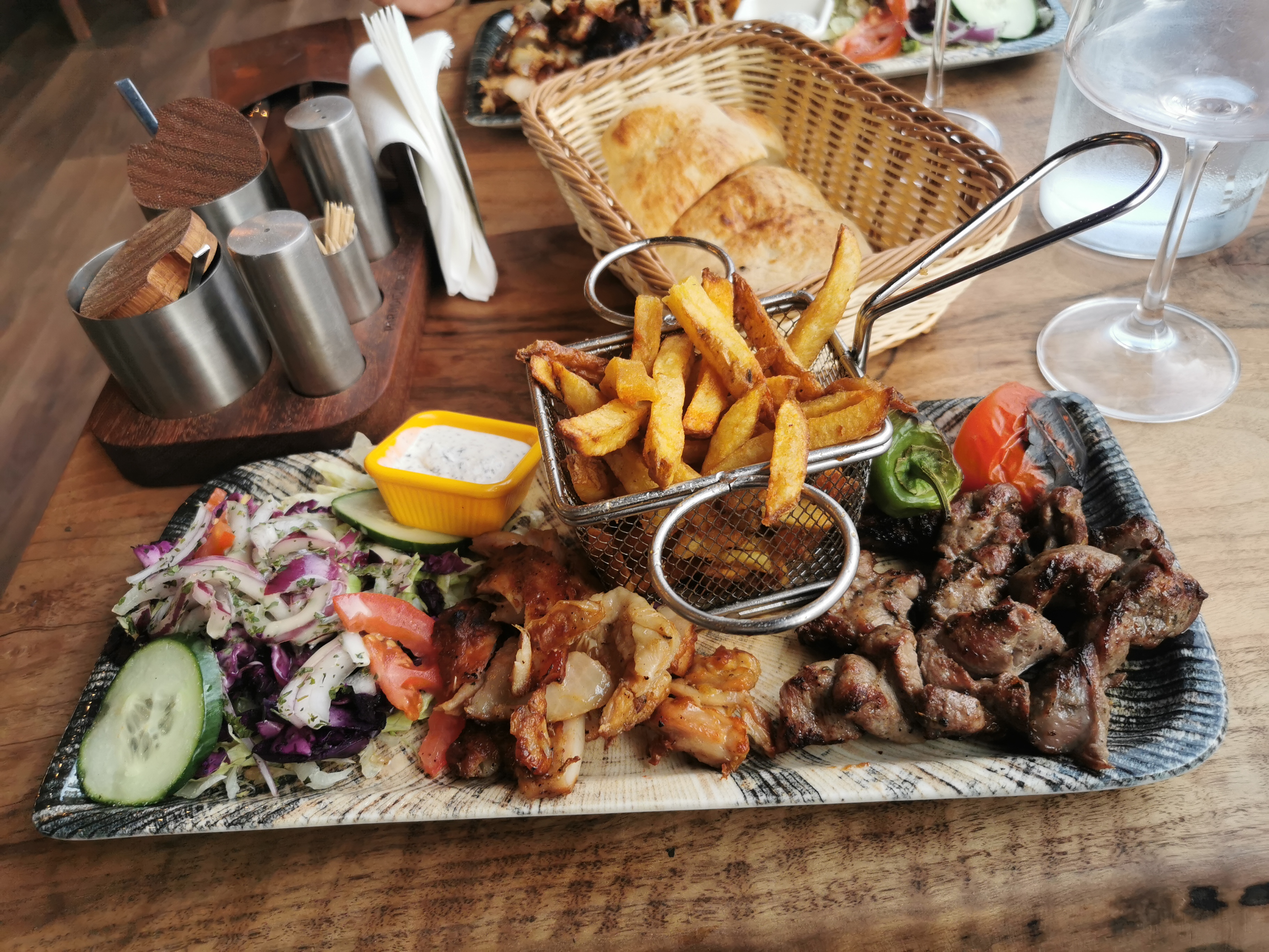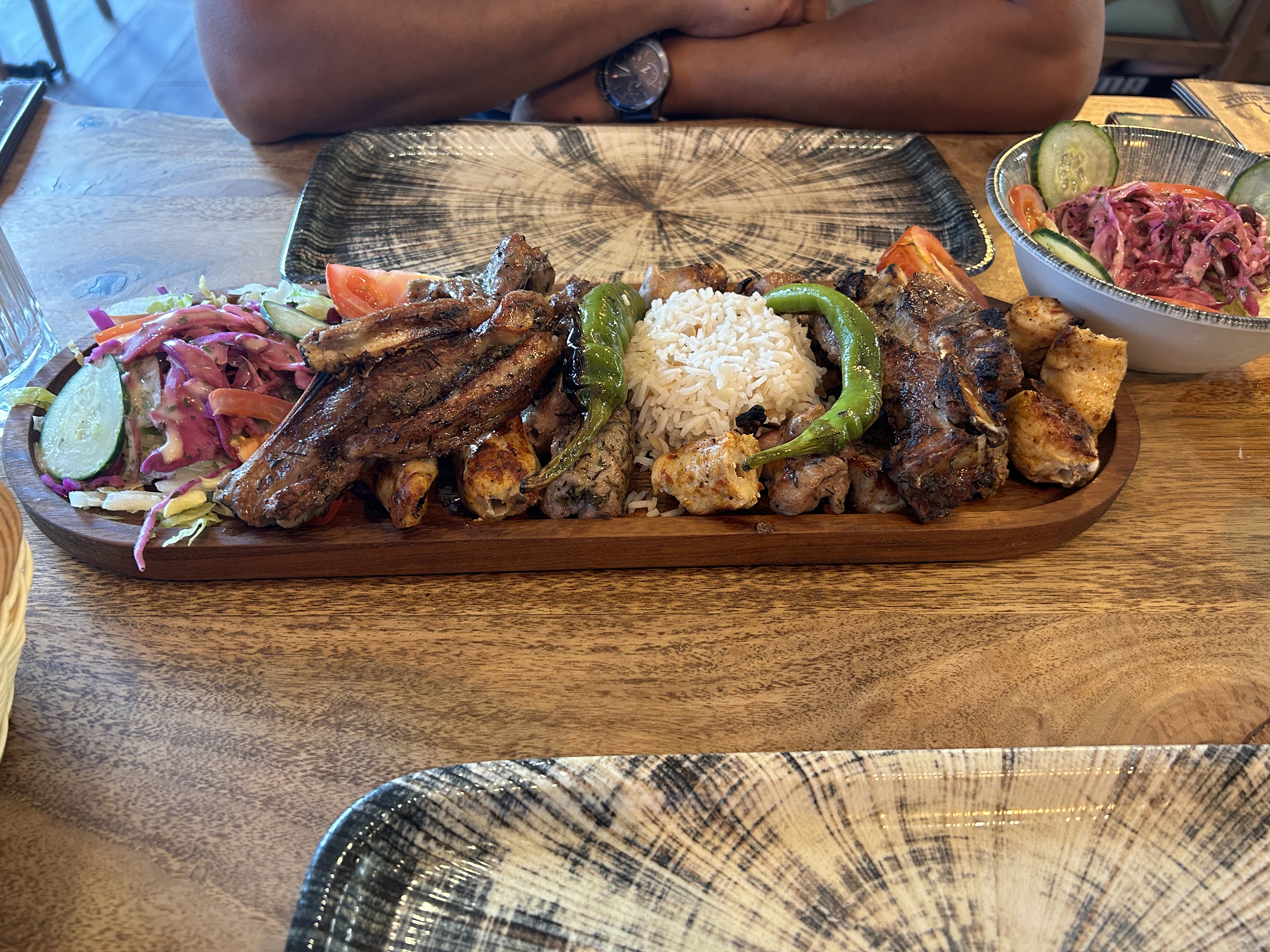 Nous ne savions pas à quoi nous attendre car Paradis Grill était niché dans un parking. Mais c'était incroyablement bon ! Le propriétaire était adorable et nous avons dégusté un immense plateau de viandes, de salades et de légumes cuisinés à la turque. Délicieux!