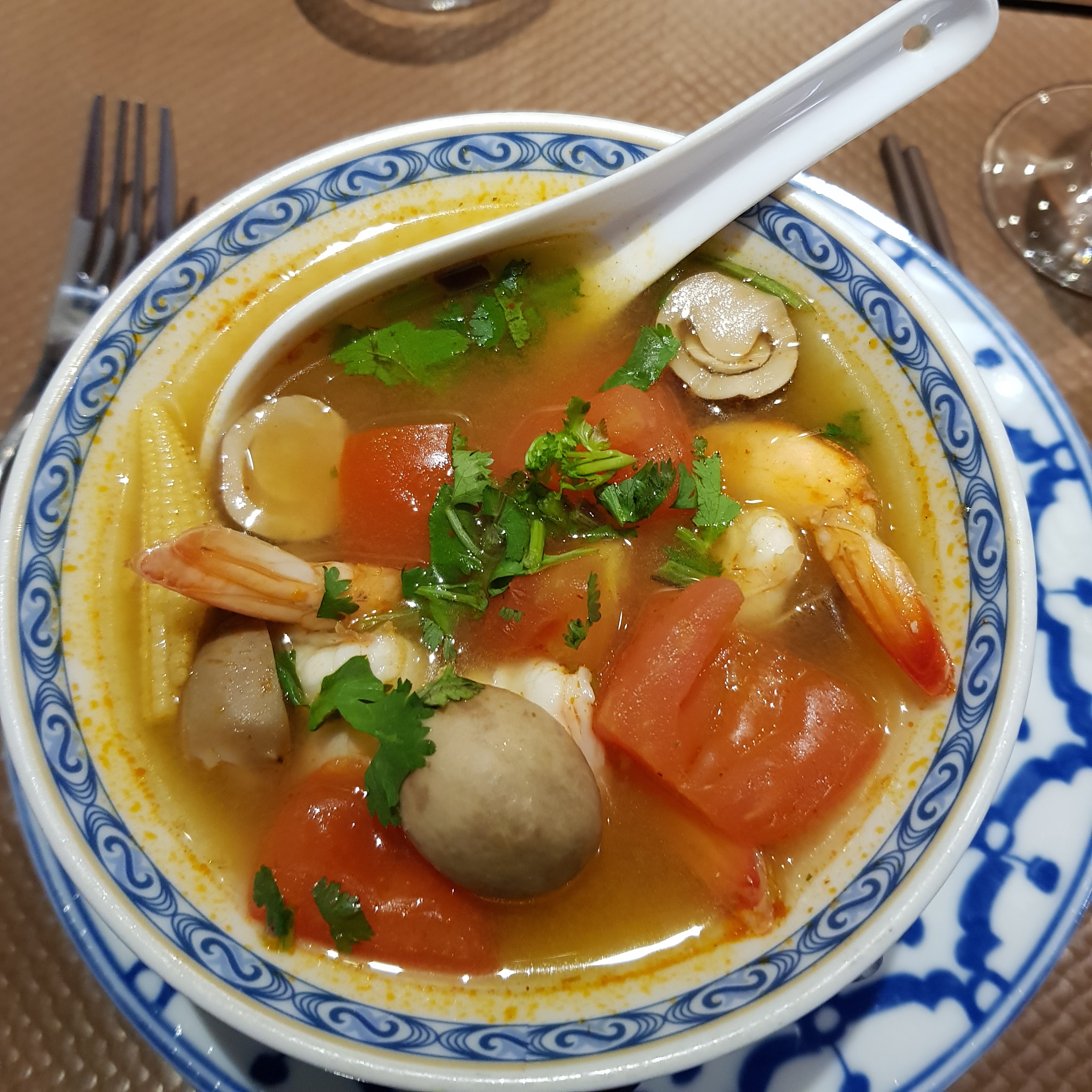 Apres de multiple voyage en Thaïlande. Je désirais retrouvais des plats. Et bien la soupe coco sans coco. Ou si peu Et le riz frit aux crevettes qui baigne dans l huile. Beurk. La cuisine thaï est normalement si raffiné. Passez votre chemin. Quelle déception.