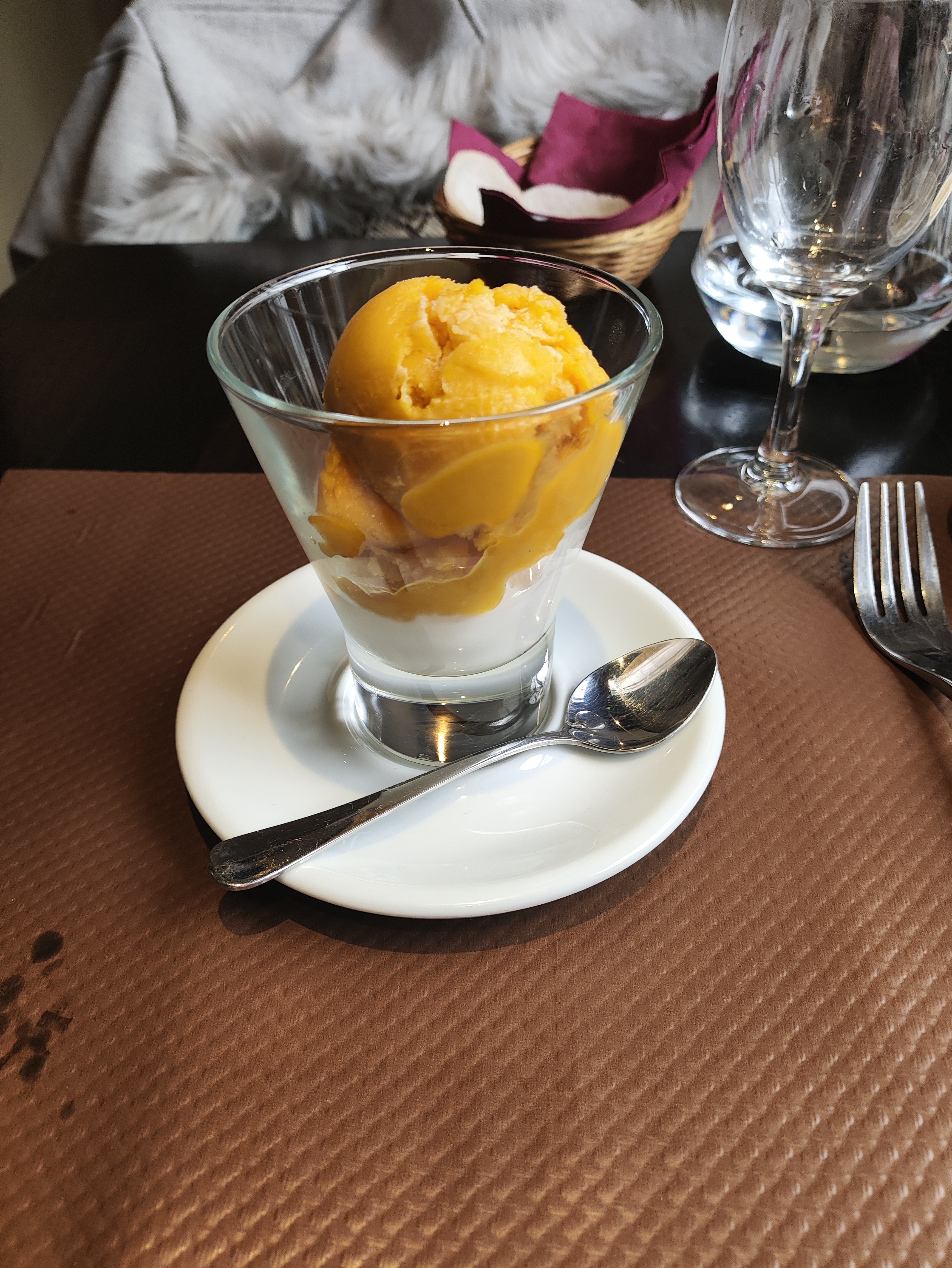 Très déçue de ma visite en janvier 2022. Pourtant j'aimais bien ce resto. J'ai invitée une amie en disant du bien de ce resto que j'ai connue il y a qq temps. Patatra. Ont-ils changé de cuisinier(ère) ? Les plats étaient bons, le service correct. Mais tout est gâché au dessert. Nous avons pris un assortiment de desserts. Le lait de coco utilisé a tourné. Nous avons flippé pour nos estomacs. J'ai signalé l'avarie au serveur mais il n'y a eu ni excuse ni geste commercial des patrons pour un resto quand même cher. Nous n'y retournerons plus. Dommage.