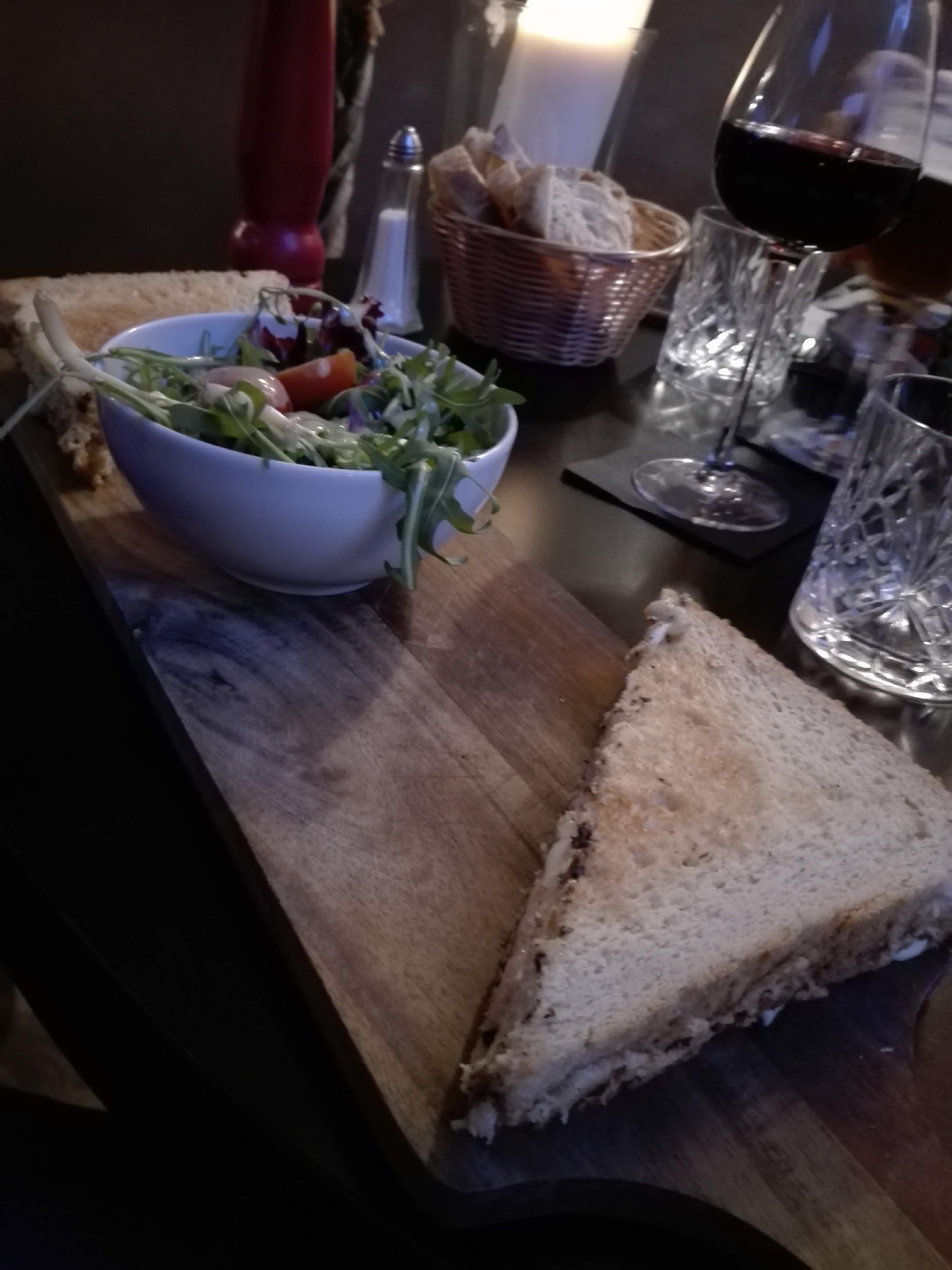 Repas très bon, prix raisonnable vu la qualité j'ai pris un croq chic( jambon,purée de truffe et foie gras.)Très bon dessert aussi. Jolie terrasse extérieure
