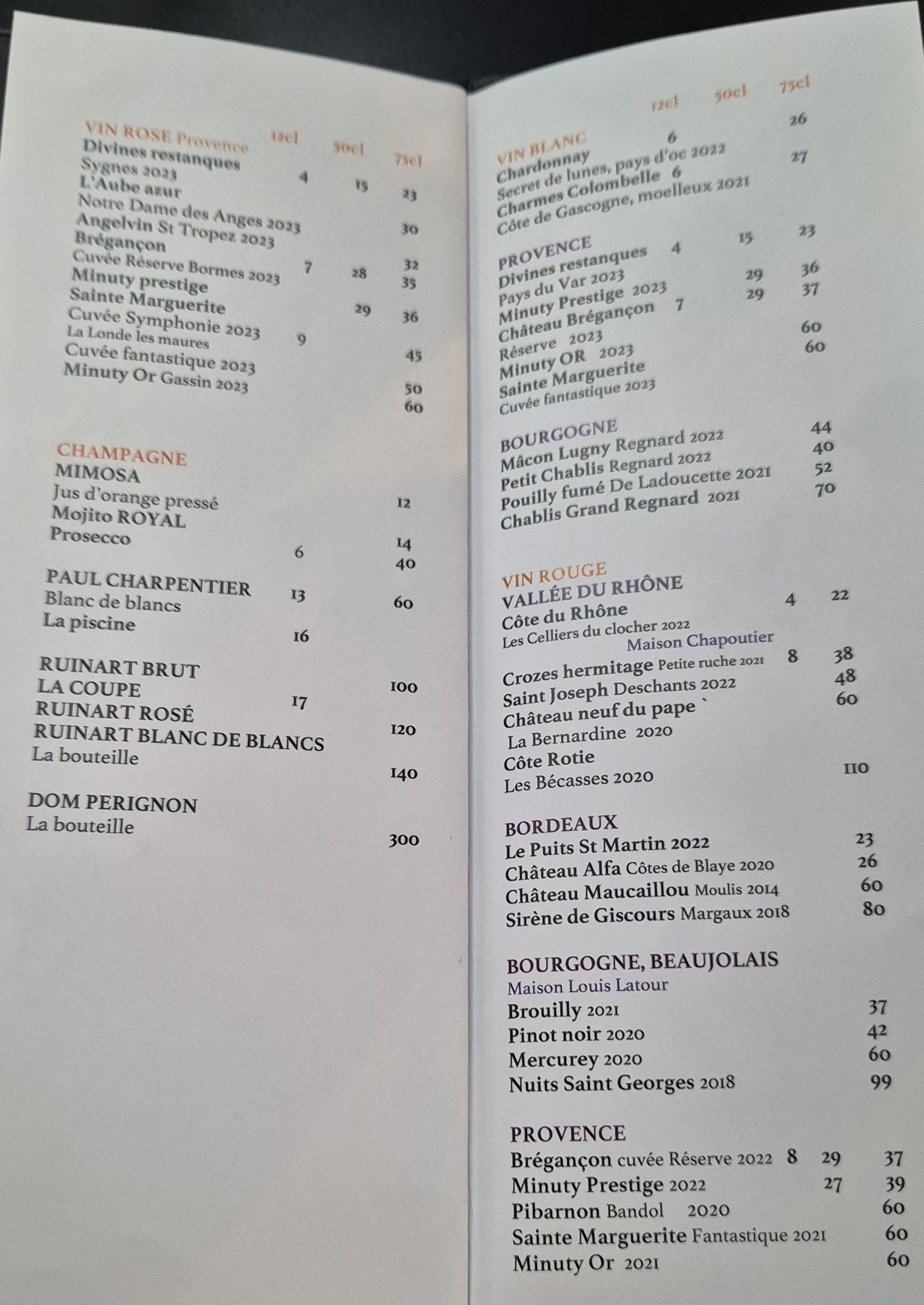 Nous venons d’aller manger à 7 pour une note de 360€ et nous nous fesons viré du restaurant à 21h55 avec une pression du patron depuis 30 min. Nous sommes pas des touristes. Impossible de prendre un digestif car on nous emmène la note sans même la demander. Une Honte !!
