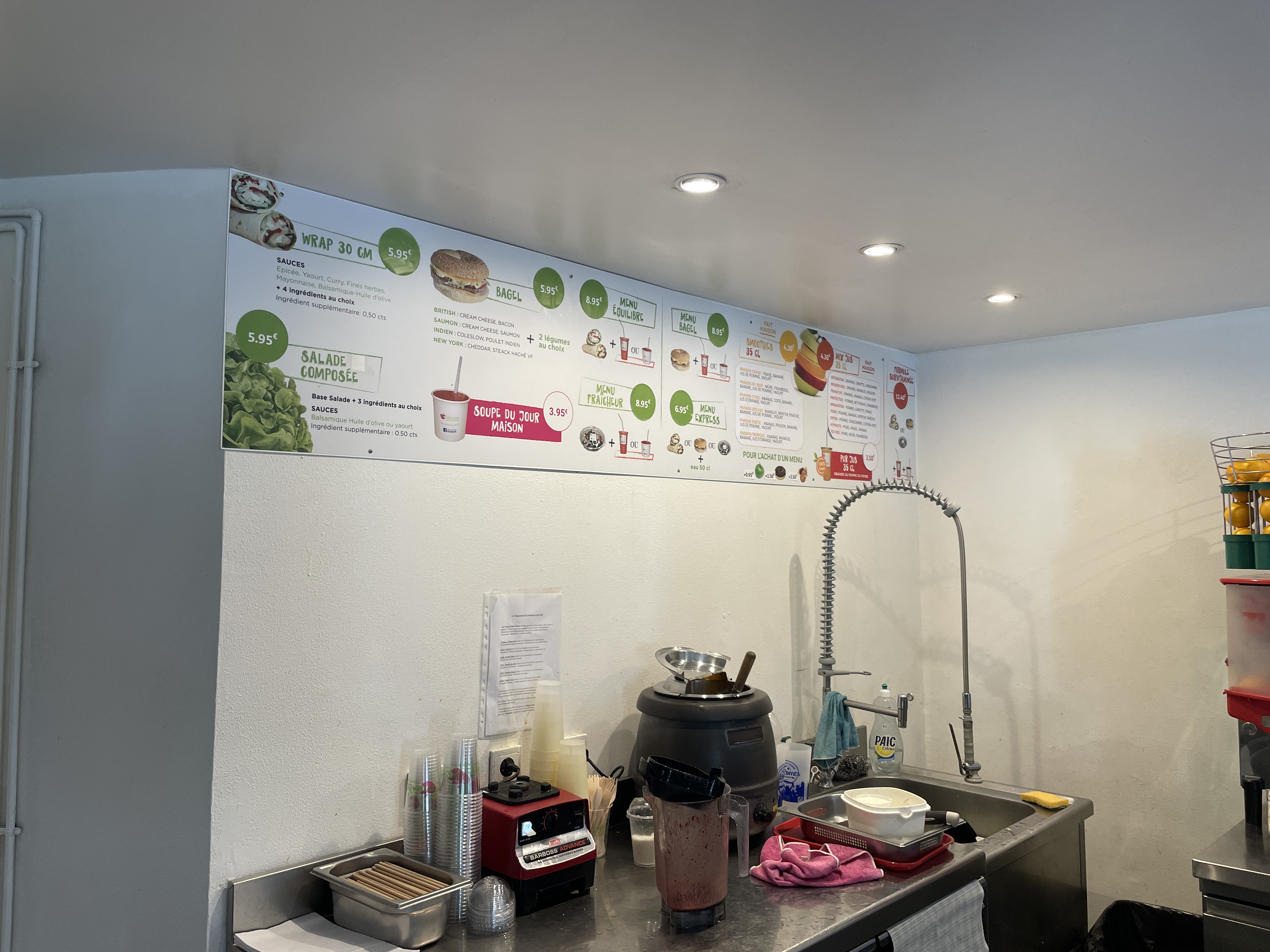 De passage à Saint-Etienne, nous avons découvert cette restauration rapide où il y a des wraps, des bagels, des salades…. Tout est cuisiné sur place devant vous. Le personnel très sympathique, et c’était très bon. En photos prix à jour en janvier 2024.