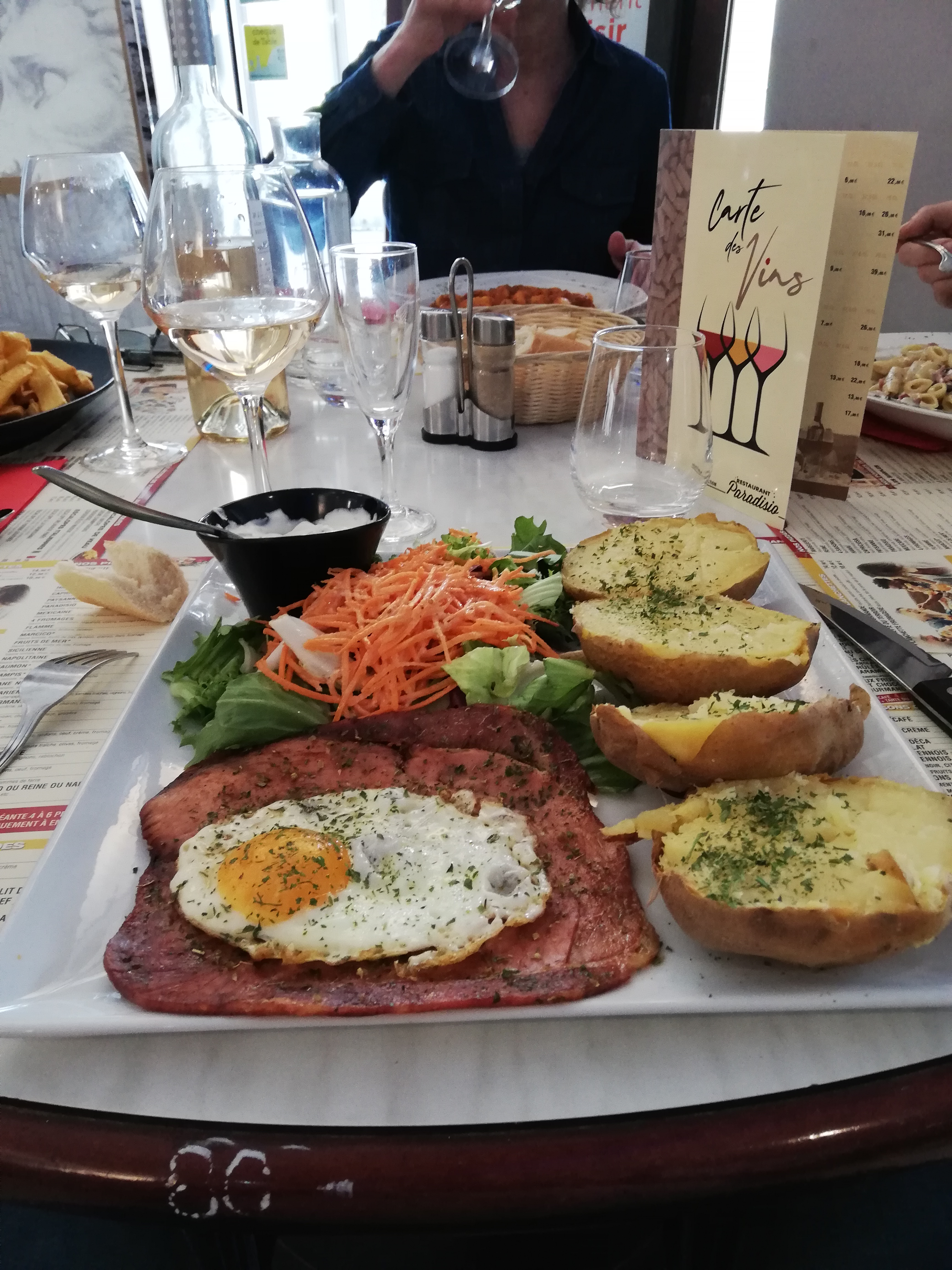 Pommes de terre au four d'accompagnement d'un plat (Chèvre de Monsieur Seguin) tout simplement immangeables ! Imbibées d'eau, cuites depuis combien de temps ?! Salade défraîchie. Heureusement la serveuse, très gentille, m'a proposé autre chose.