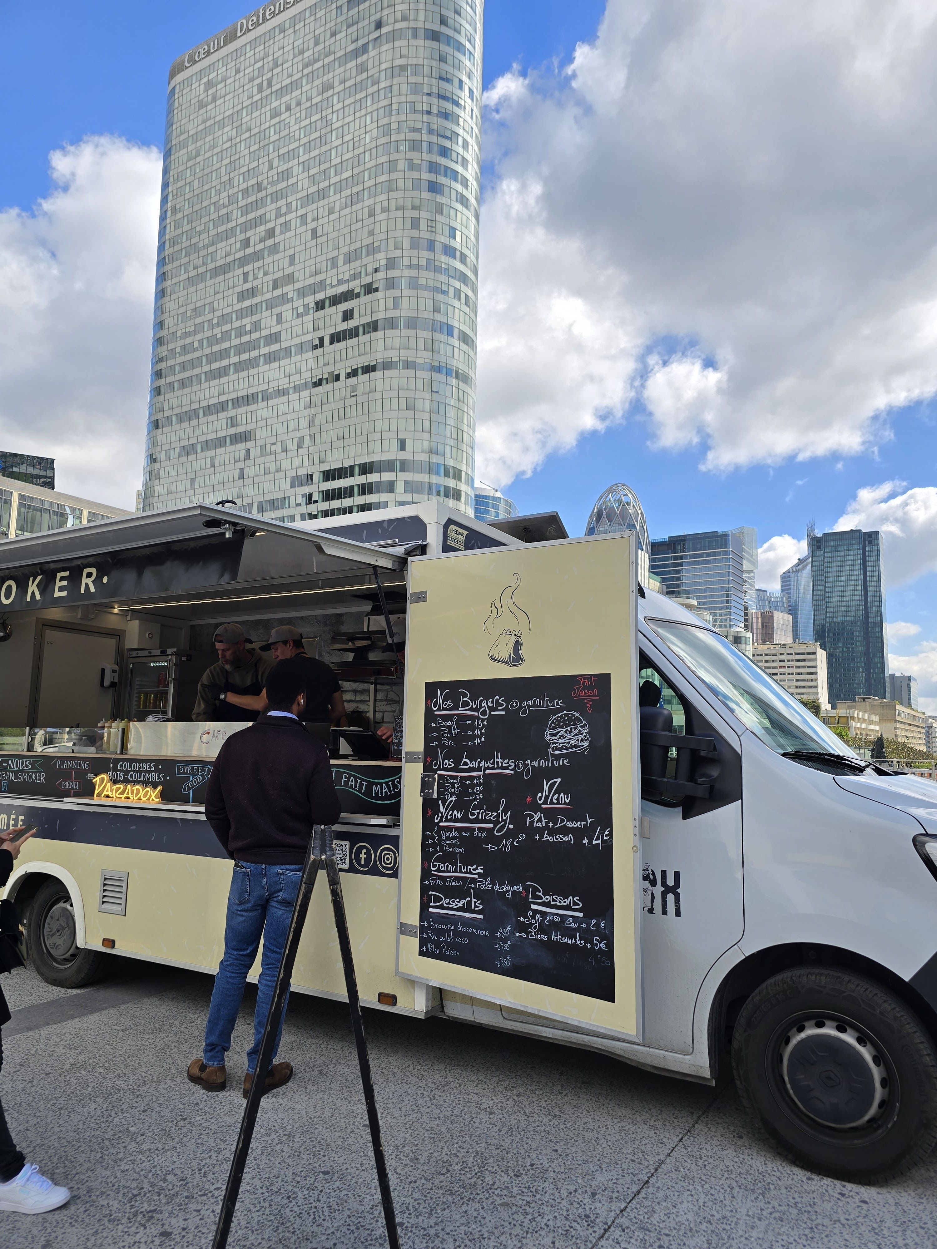 Très bon burger et frites dans ce food truck du parvis de la défense. Le personnel est accueillant et adorable et parle un anglais parfait. Nous avons été servis en 5 minutes à peine et avons pu manger notre burger chaud.