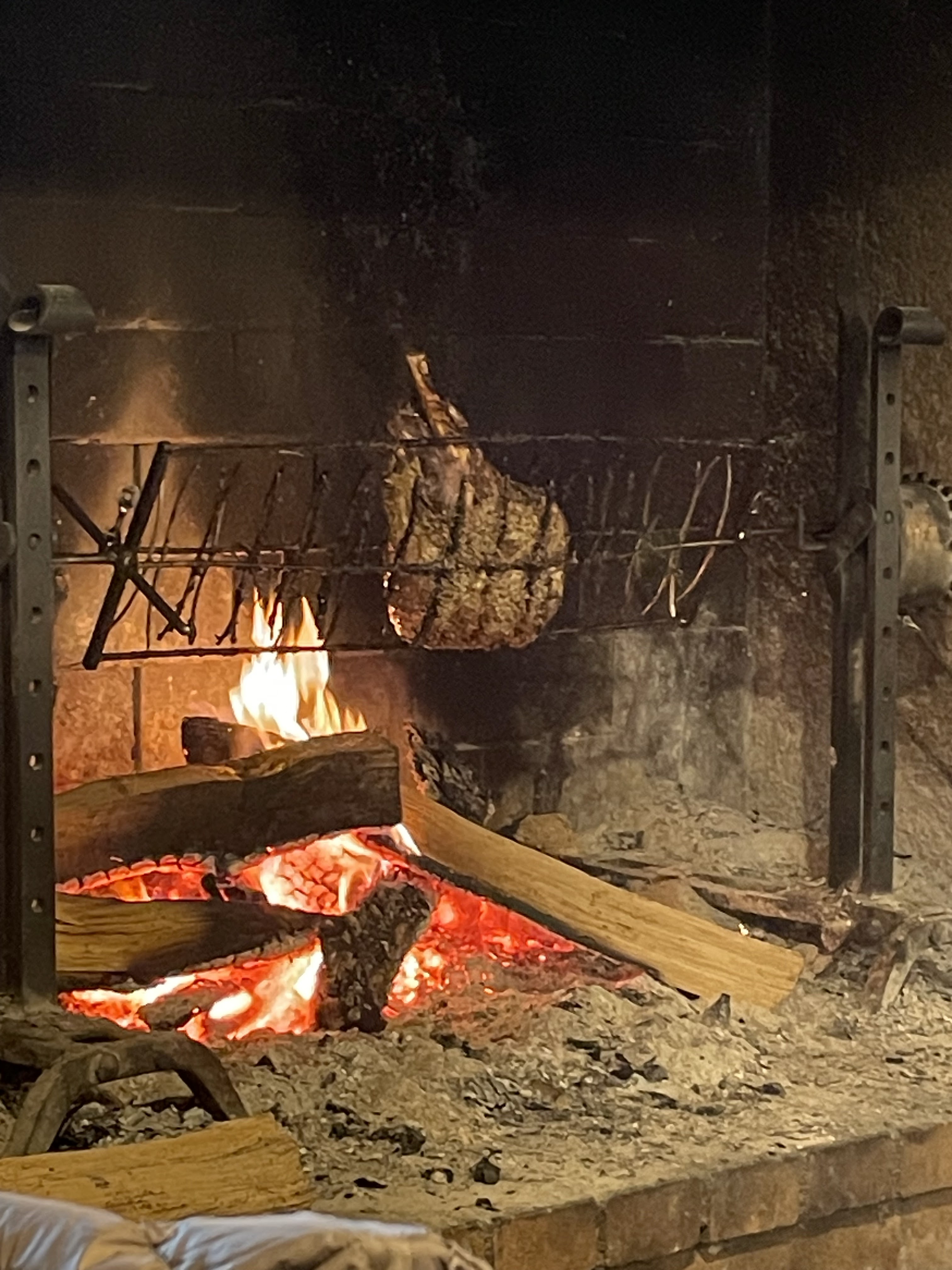 La cuisse de marcassin tourne sur la braise, salade de confit, terrine, tourte pour se mettre en appétit. Un vrai regal.!