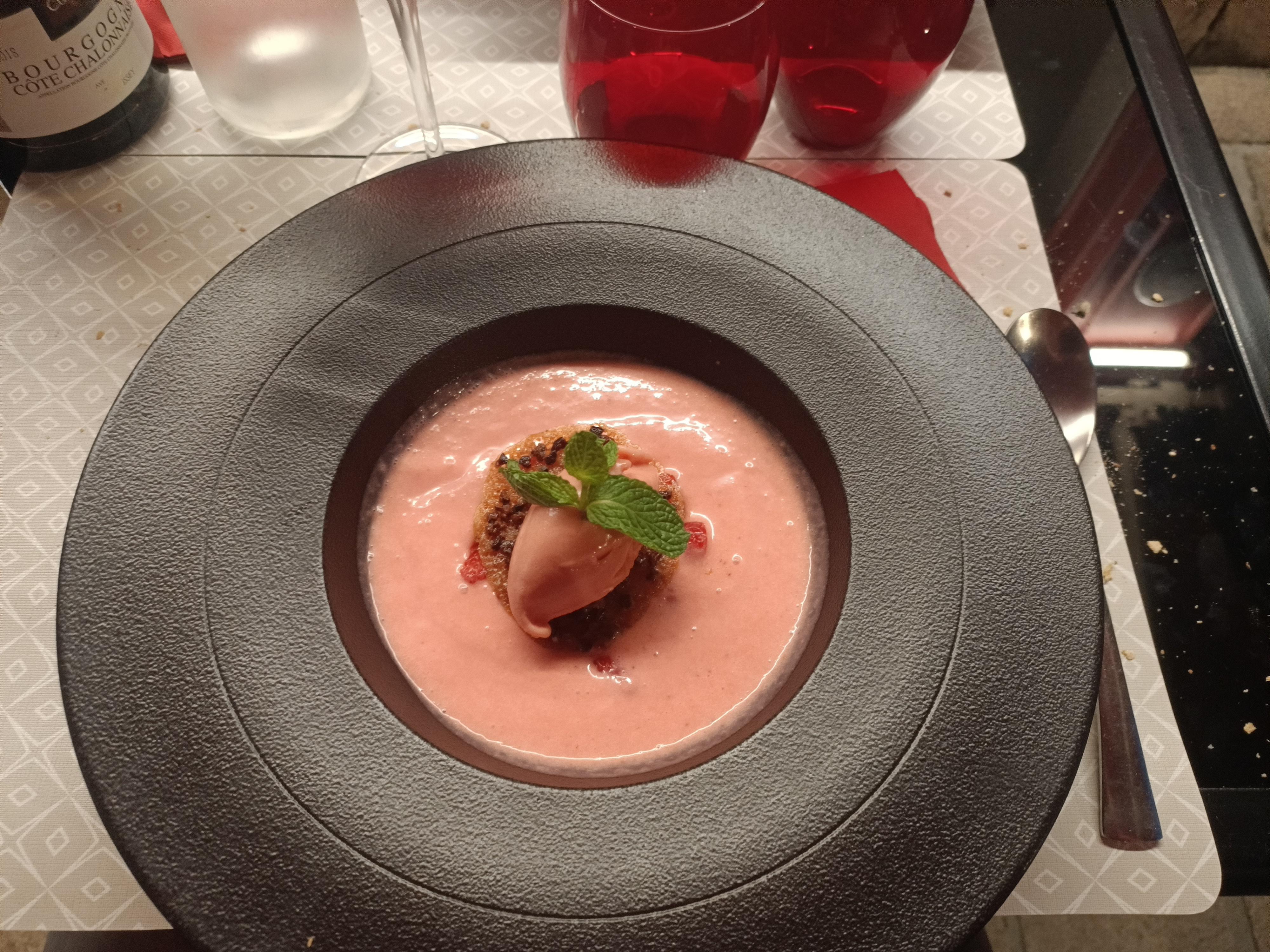 Un repas qui commence par des amuse-bouches qui sont tout simplement succulents, ensuite le menu est juste extraordinaire avec des plats stupéfiants qui viennent émoustiller les papilles que du régal de l'entrée en passant par le plat jusqu'au fromage et l'apothéose avec le dessert je recommande vivement en rapport qualité-prix sur Chalon il est impossible de trouver mieux