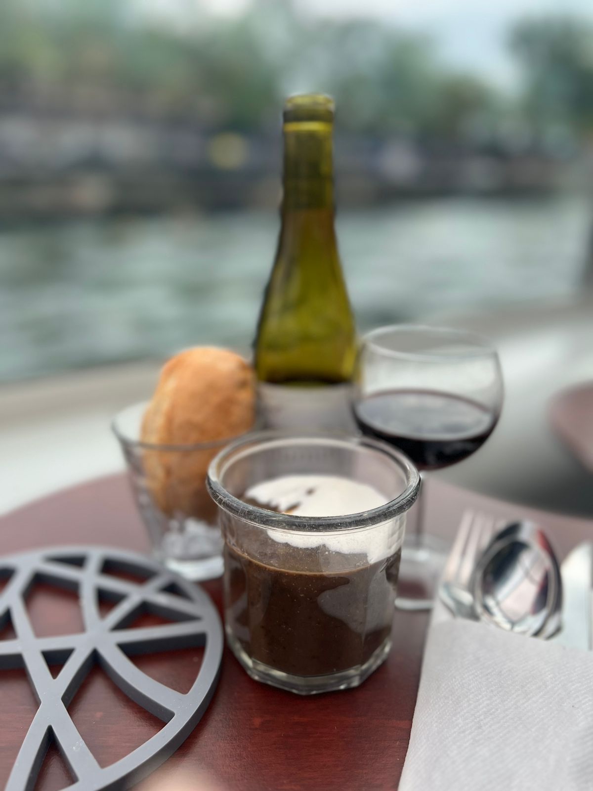 Malheureusement un itinéraire de croisière bien moins beau que ce qui était prévu en raison la crue de la seine... Ambiance un peu bruyante et dessert assez simpliste. Formule vin plus chère que si j'avais pris la formule eau et que j'avais acheté la bouteille en supplément....