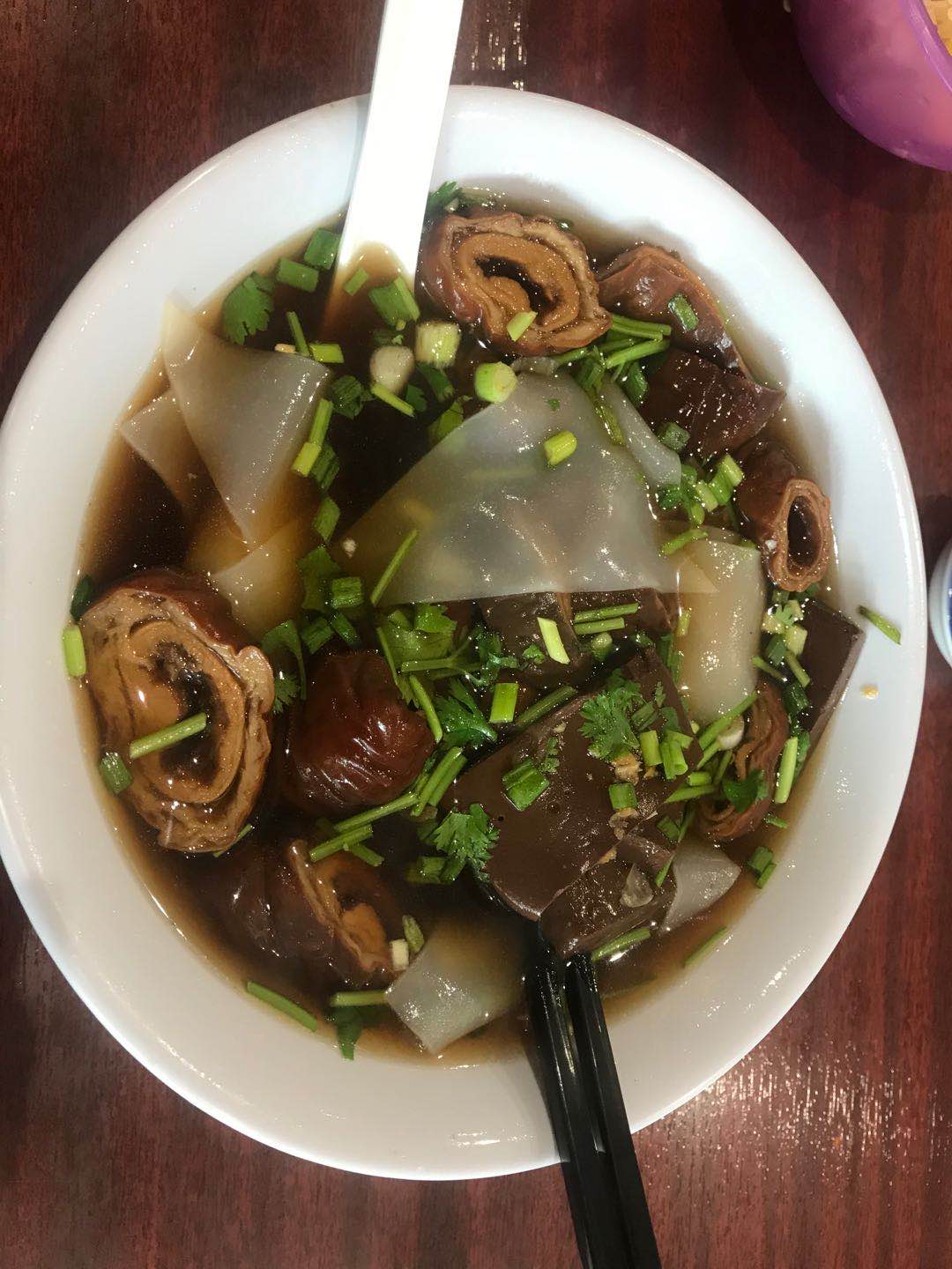 Très bonne adresse si vous aimez les tripes de porc ! La soupe de pâte de riz aux tripes de porc est bien goûtue ! Et les tripes de porc frites bien croustillantes ! Ne vous fiez pas au cadre un peu sombre et à la salle à moitié vide. Il n'y a encore que les connaisseurs et les habitués.
