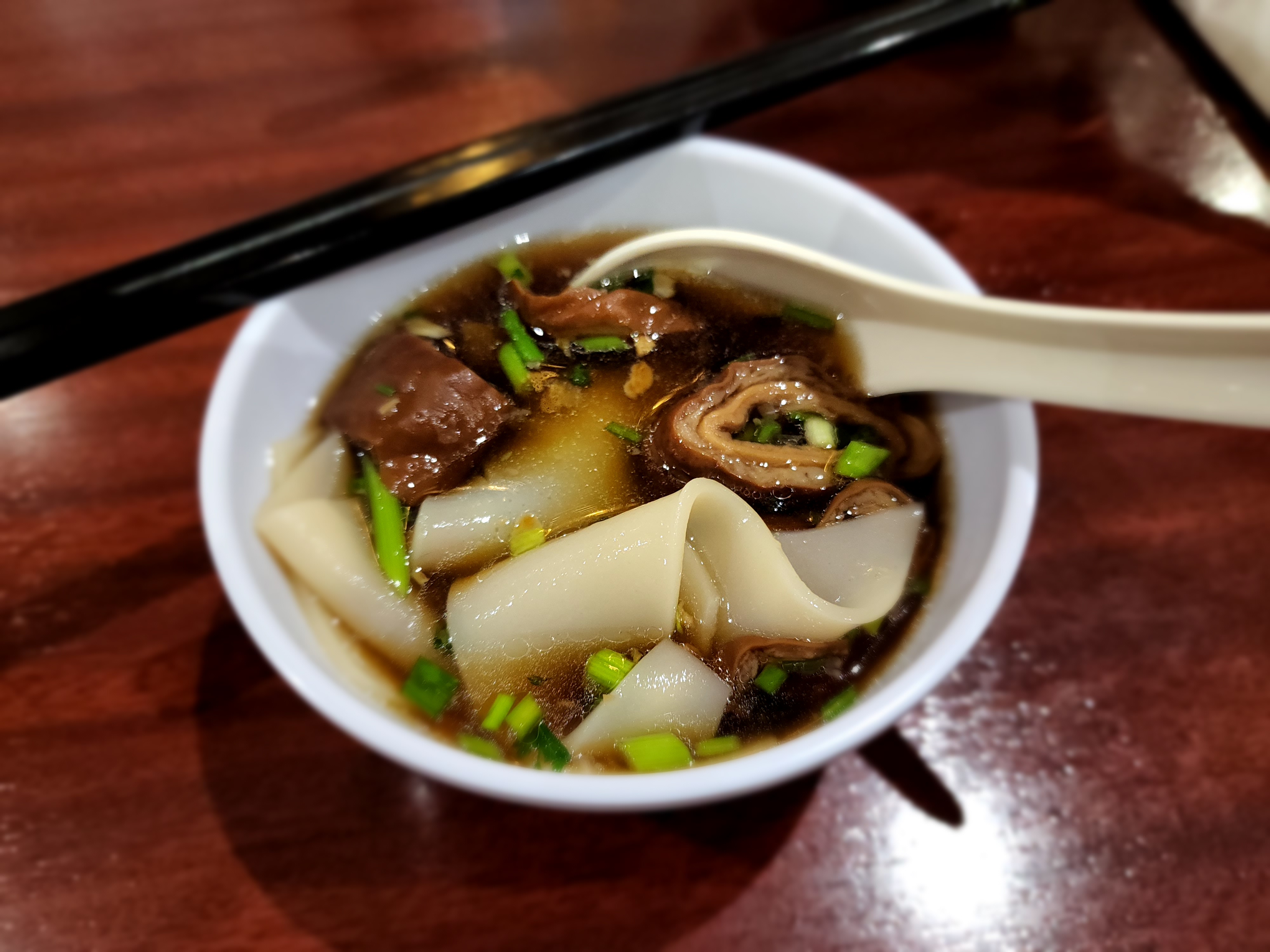 Les nouilles à la soupe aux tripes étaient très bonnes, mais j'ai vu un rat en dînant là-bas, donc mentalement, je ne me sentais pas bien après.