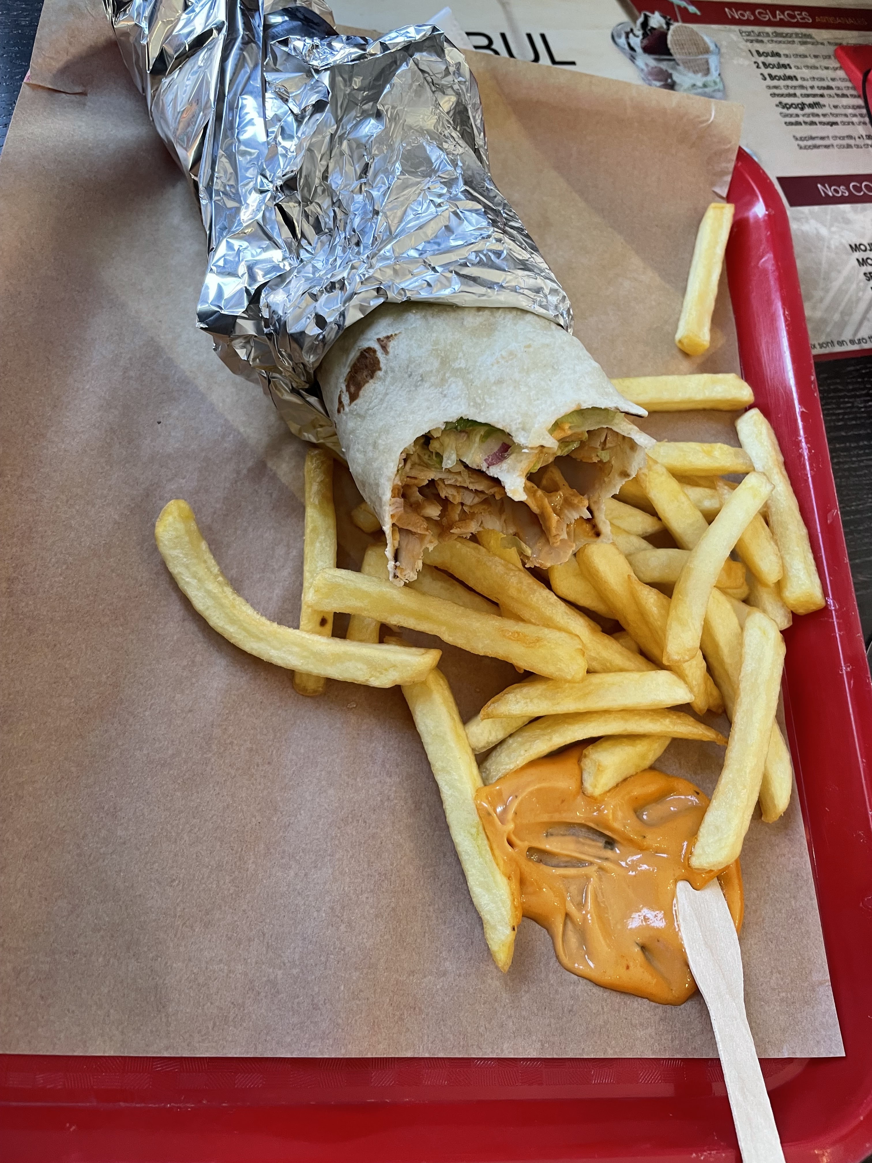 c'était excellente. que dire apart que je n'ai pas fini ma sauce serveuse agréable et sourient produit de bonne qualité merci beaucoup