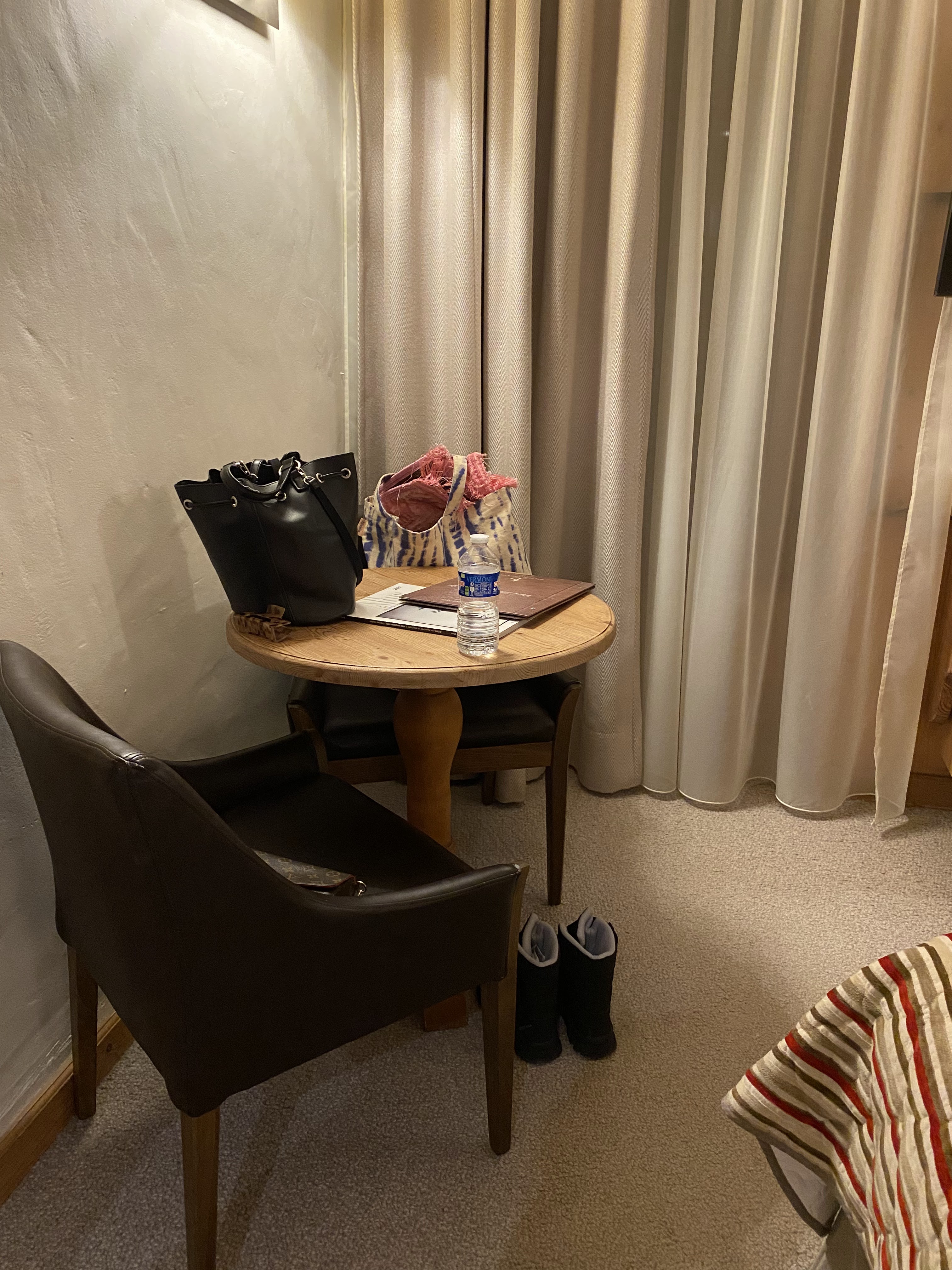 Honnêtement super déçue. J'ai payé vraiment cher au final (la chambre pour une nuit, le parking (oui il est payant ...), les petits déjeuner et le supplément pour notre toutou) : 265 euros. Les prestations ne sont clairement pas à la hauteur. La chambre est assez spacieuse mais vraiment pas très bien décorée. Nous n'avions pas de télécommande pour la TV, on a été en demandé une à la réception mais celle fournie ne fonctionnait pas non plus. Vu sur une cour intérieure vraiment moche avec un gros bruit de ventilateur. L'évier bouché. La baignoire vraiment très petite. Le standing d'un 4 étoiles n'est clairement pas là. Le SPA est sympa, vu sur les montagnes mais franchement sans plus ... j'ai déjà vu bien mieux. Bref n'y aller pas, vous serez vraiment déçu pour le prix... Je n'aurai pas dû payer plus de 100 à 120 euros maximum et tout compris pour les prestas proposées.