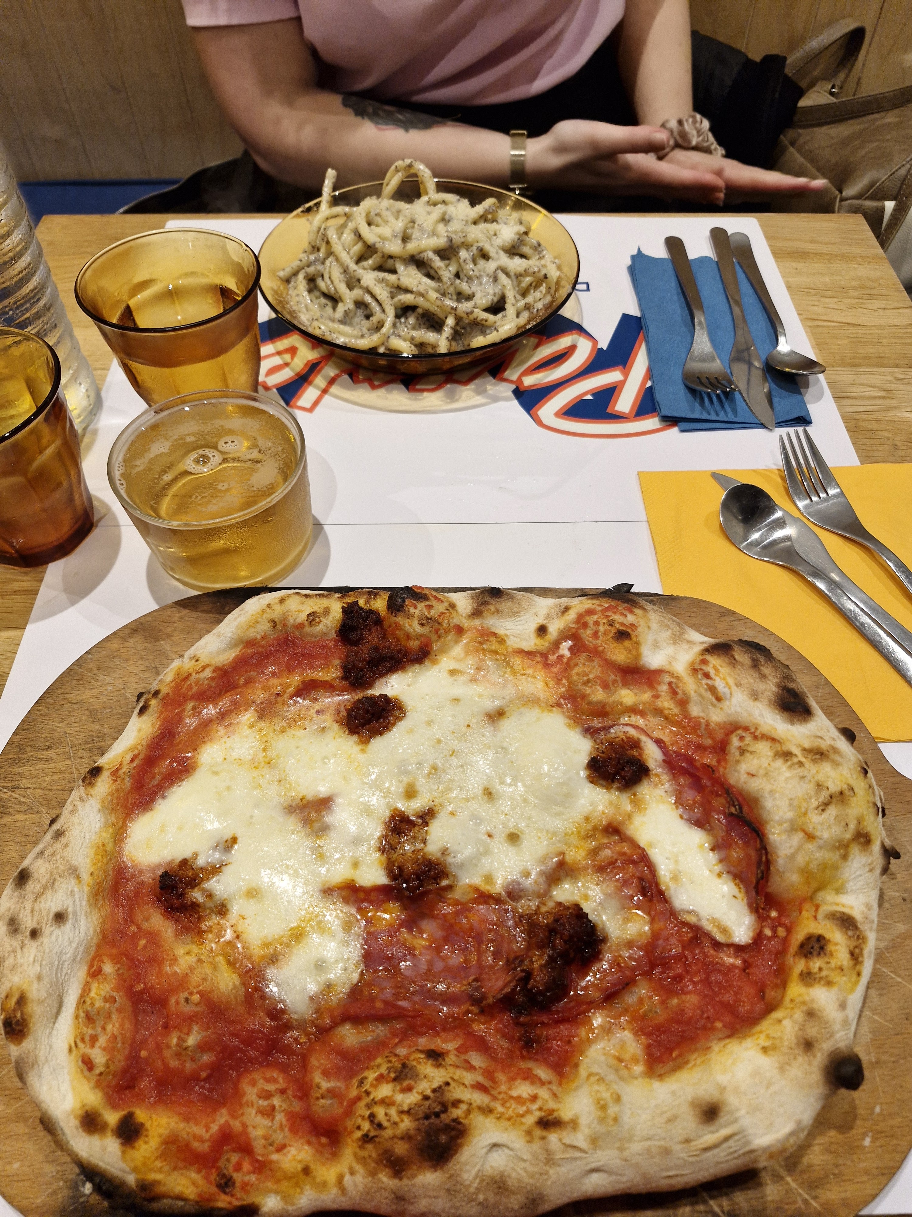 Les pizzas sont bonnes et le service est niquel ! La carbonara était très bonne, même si un peu cher. Pas un reproche mais un simple avis personnel, je trouve la forme de la pâte (bucatini ?) pas adapté car pas suffisamment de sauce pour être apprécié.