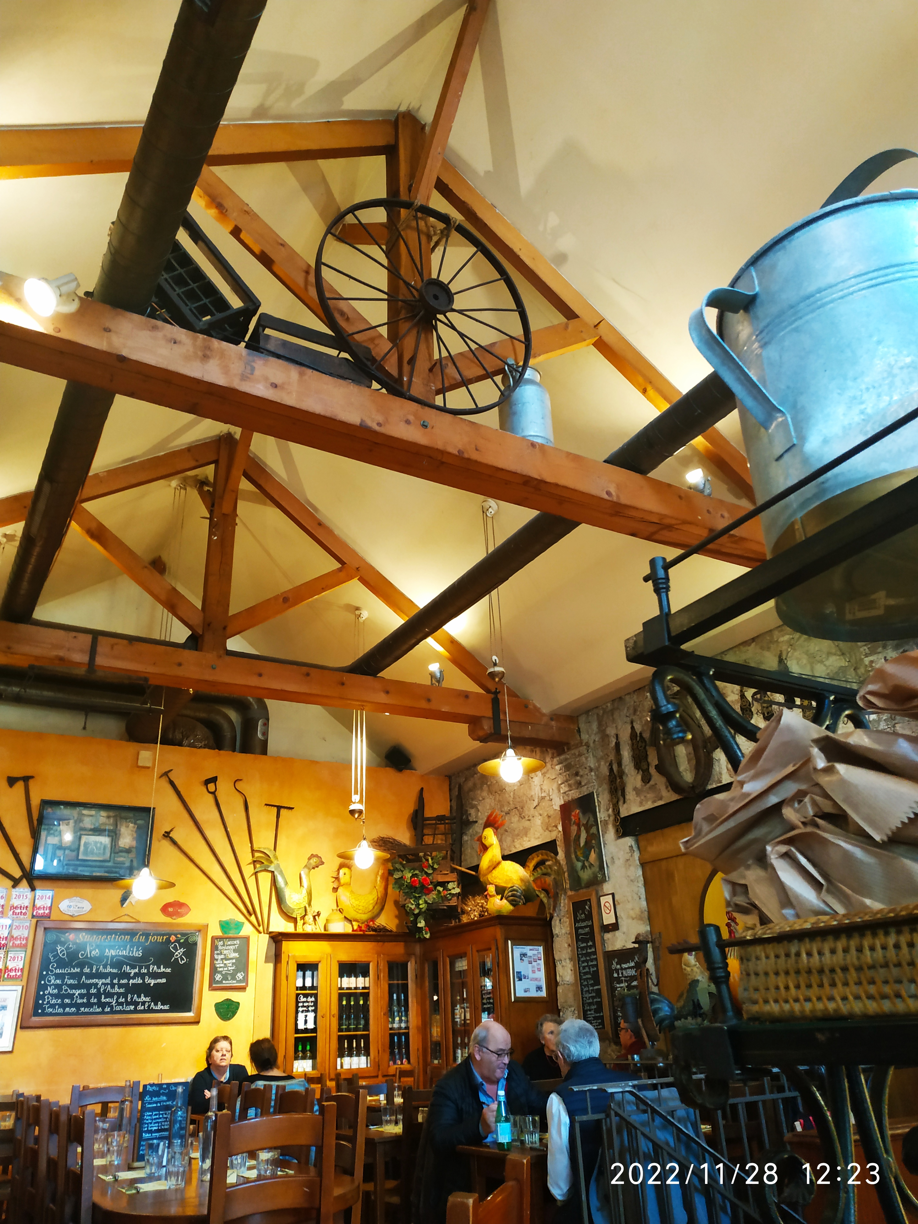 Miam ! J’ai été transportée en Aveyron avec cet aligot. Que de décorations rustiques. On sent bien que le restaurant mérite ses 14 ans d’affilée célébrés par le Petit futé. Merci à Louis pour un service impeccable !