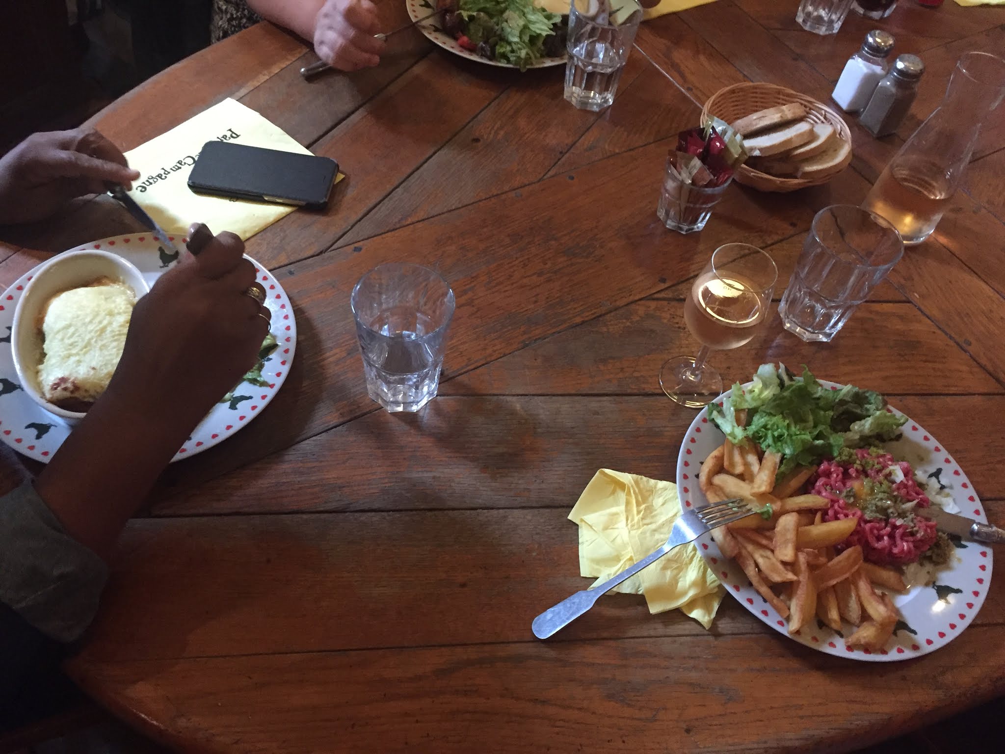 Le 20 mars, sommes arrivés à 2 pour le déjeuner : restaurant choisi au hasard dans une rue très sympathique, accueil moyen et cuisine médiocre. On ne devrait pas se dire restaurateur en servant un tel plat : pièce de boeuf Aubrac/frites.