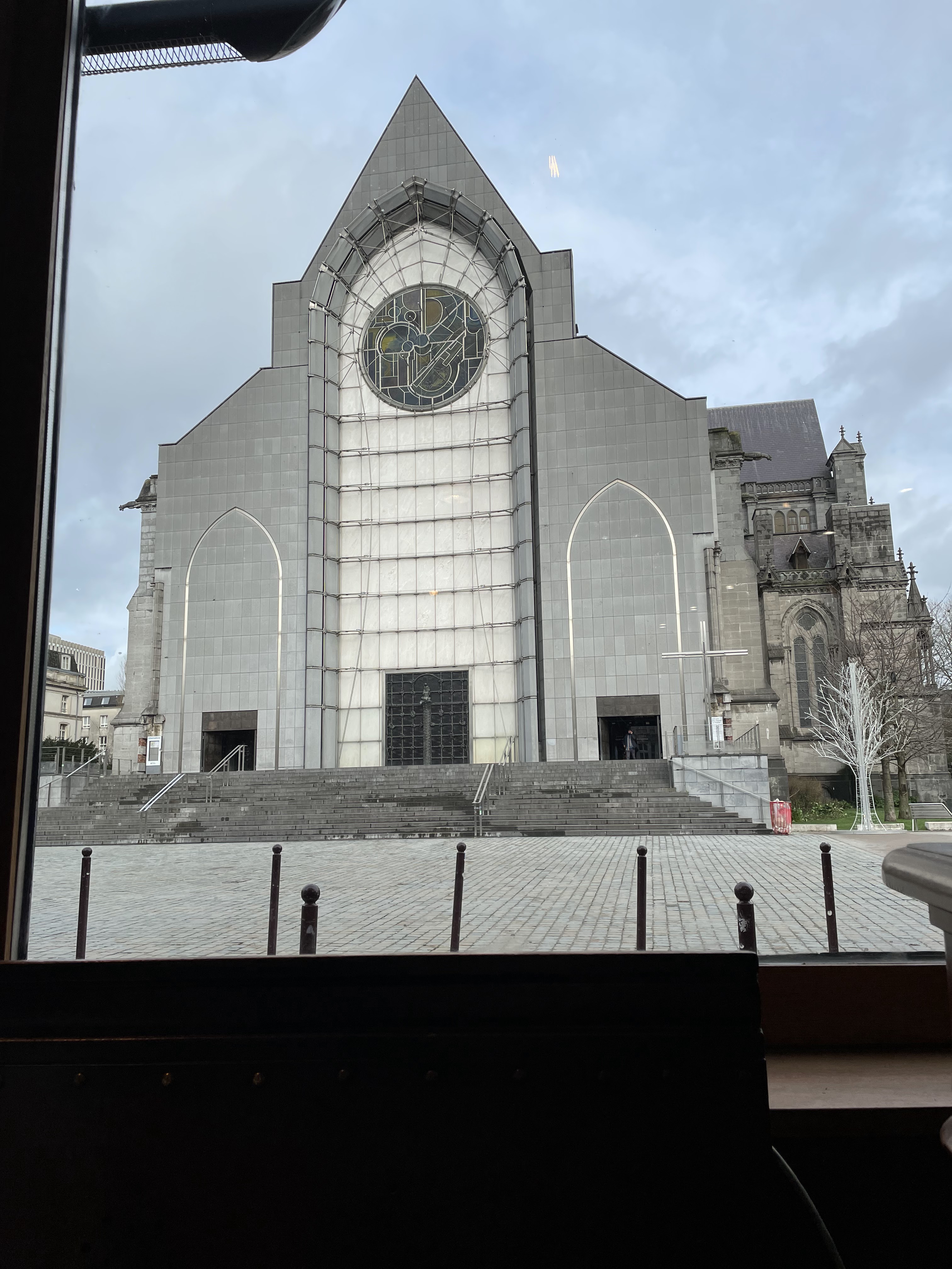 Bar avec très grande terrasse sur le parvis de la cathédrale de Lille. Accueil sympathique et naturel de ''Karim''. Prix corrects selon moi ( vs autres bars de Lille!): 1 orangina 3,50€ bière blonde pression 25 cl 4,50€... Au soleil ( oui 2 jours cet été!!) en terrasse, peu de voitures bruyantes et polluantes... Un bon moment agréable grâce à l'endroit et au service souriant ( masqué!) et agréable ! merci :)