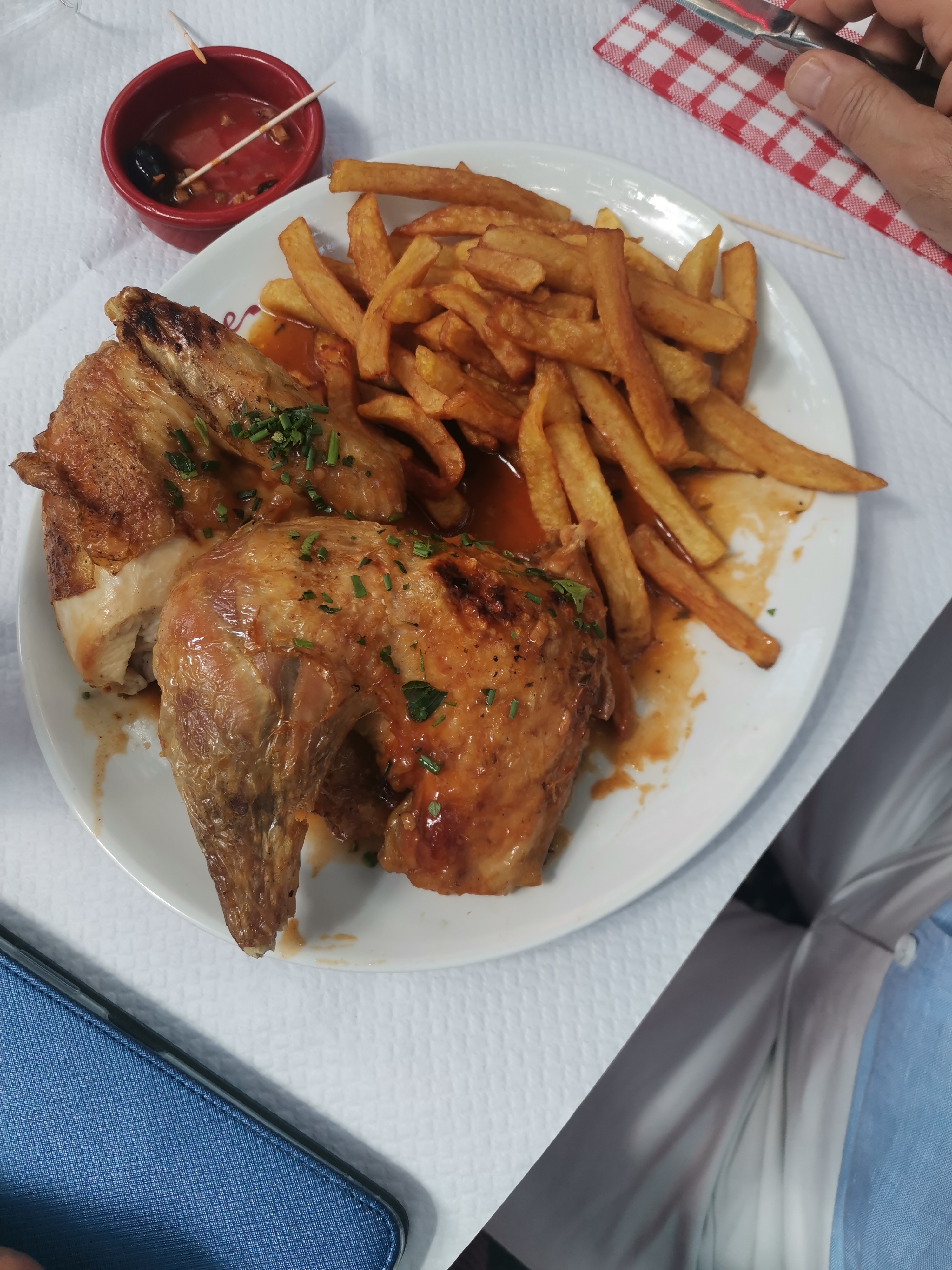 Poulet pas bien cuit, frites également. Je l'ai signalé à la serveuse quand elle a demandé à la table si tout se passait bien. Cependant elle n'a rien fait suite à mon mécontentement. Se contentant d'acquiesser !