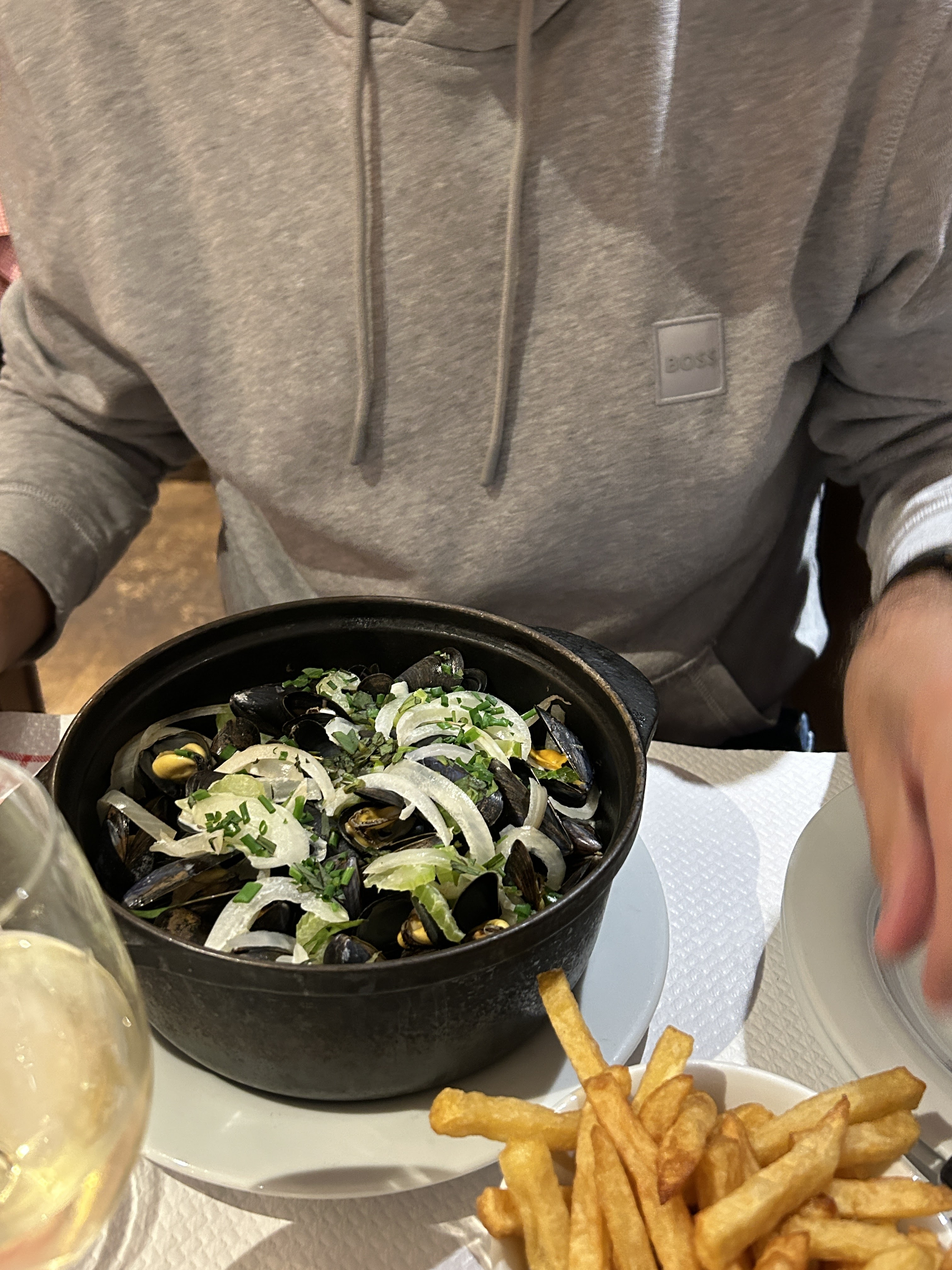 Super ! J’y suis allée 2 soirs de suite nous avons tous mangé des moules au roquefort qui étaient très très bonnes. Le serveur étais très aimable, réactif et professionnel. Service impeccable. Quant au prix du repas avec les moules frites à 14,5€ l’unité c’est tout à fait abordable! Nous reviendrons!
