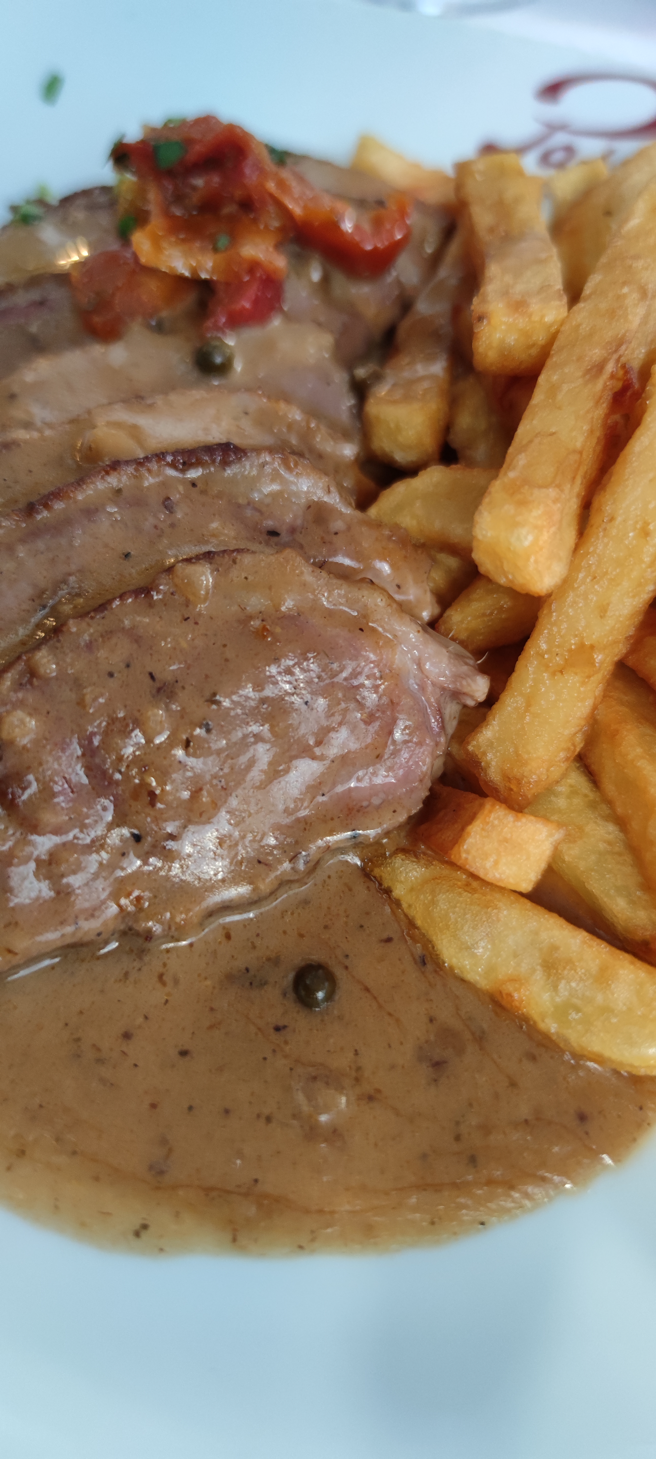 Bavette excellente , sauce au poivre exquise , mais déçue des frites maison qui été dur , froides , je dirais immangeable....Pas d'assaisonnement sur la bavette ni les frites , c'était réellement fade . L'assiette n'était pas fort rempli pour un repas tout compris à 43 euros .