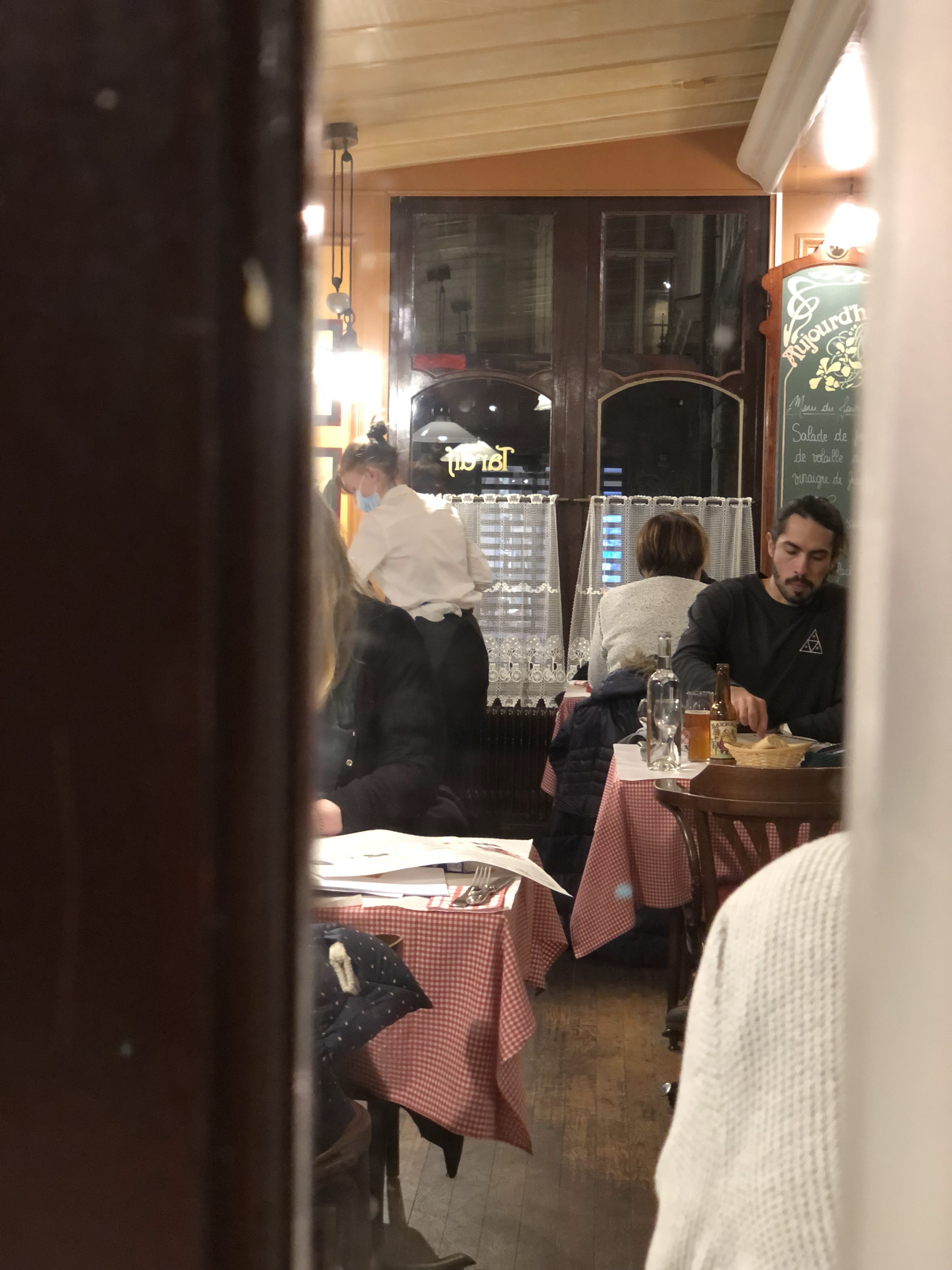 Un bon bistrot à l'ancienne, authentique comme on les aime. La carte est faite de plats simples et de spécialités locales. J'ai commencé par des huitres. Puis la fricassée de crevettes & chorizo piquant. La ration est plutôt petite mais ça s'explique par la taille du plat principal. Plein de gout, épicé, fumé, un régal. En plat : Rissolé de cochon & merguez, choux de Bruxelles au romarin. Quantitativement très copieux. C'est fondant, un peu épicé, ça se mange tout seul. Dessert : Sorbet pomme verte «Glace des Alpes» & Calvados. Frais et fruité, très bien. Mon seul bémol concernera le service qui était un peu perfectible. A l'apéritif tout d'abord : vous faites des americanos, vous avez du gin à la carte, donc vous pouvez faire un negroni. Non on ne fait que ce qui est sur la carte. Mais vous savez que c'est un negroni ?. Non. C'est un americano et on remplace l'eau par du gin. Non on ne le fera pas. Puis on m'apporte les huitres alors que l'apéritif n'est pas fini. Je me hate de finir mon verre et attend le vin. Ah je pensais que vous prendriez votre vin avec le plat vu que vous aviez votre apéritif. Ben oui mais si vous apportez le plat alors que l'apéritif n'est pas fini.... Bref, ça c'est amélioré par la suite mais sur le coup c'était un peu énervant.