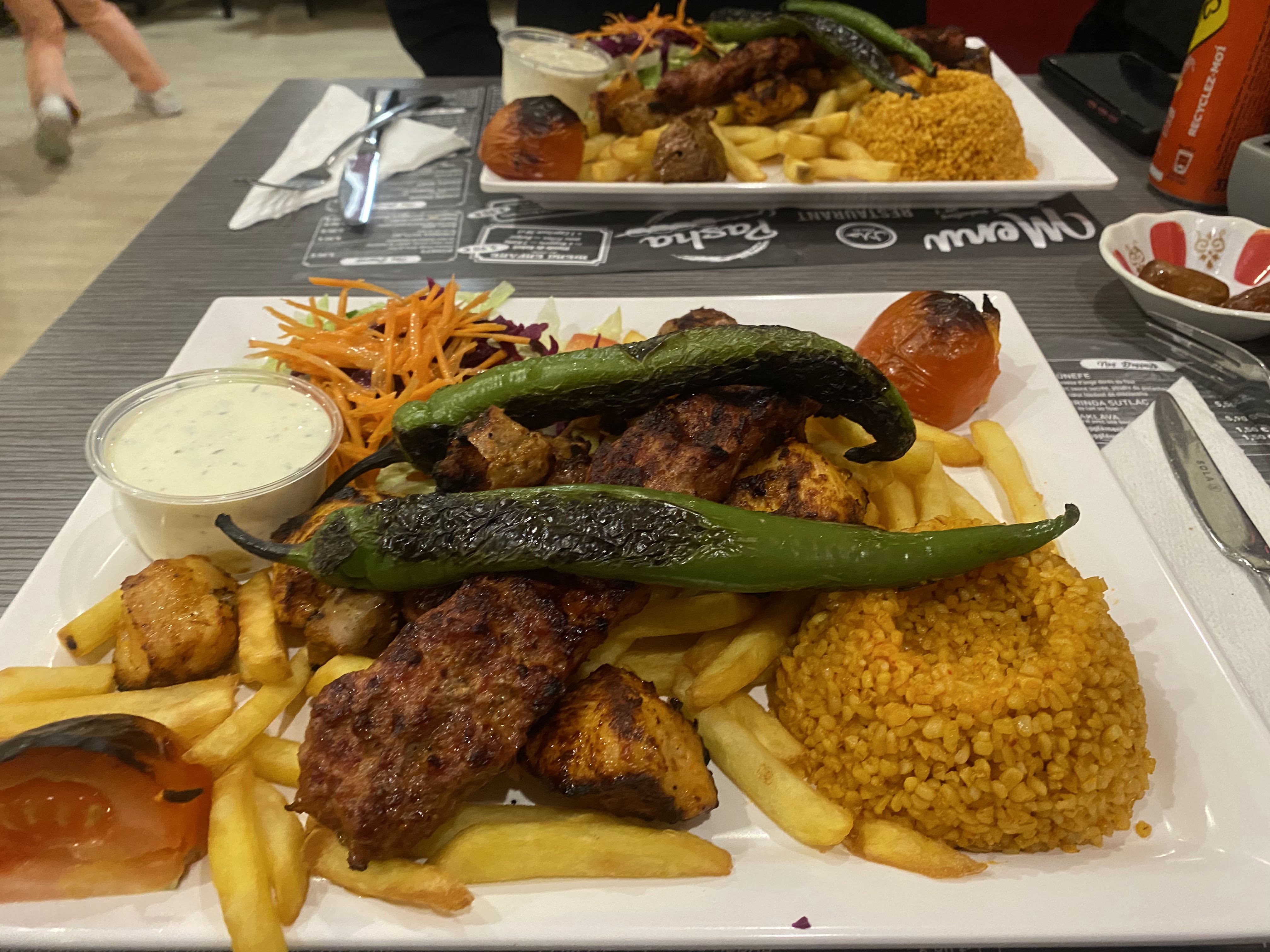 Viande de kebab de mauvaise qualité, certainement du surgelé. Brochette de poulet assez bonne. Salade, blé, frites très basique.. Dans l'ensemble prestation très moyenne.. Pour le prix que sa a coûté, je pense pas y retourner de si tôt.