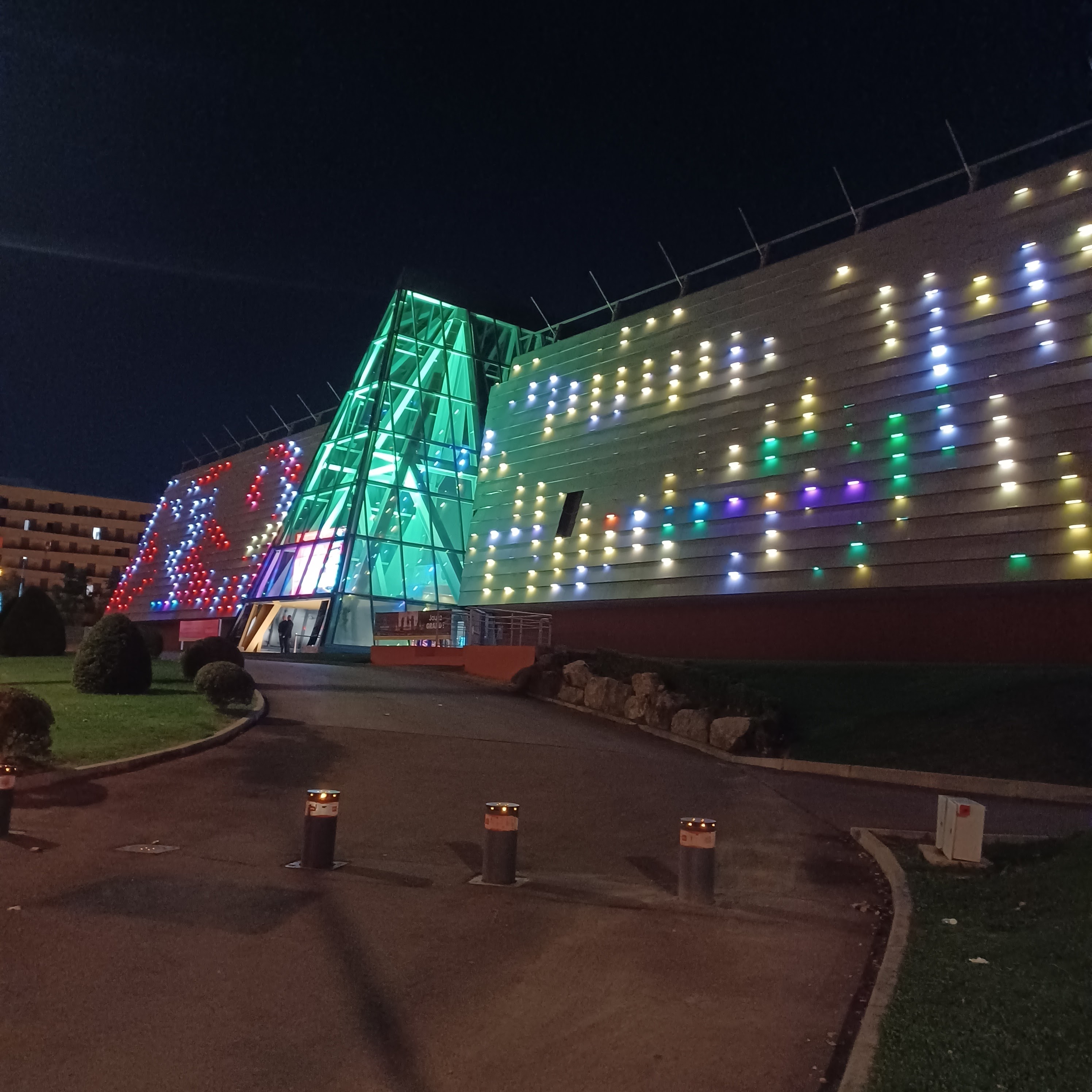 Lieu très sympa pour une soirée spectacle ou pour l'accès aux jeux. Parking gratuit en sous sol. Personnels de placement très sympa. ATTENTION : Les pièces d'identités dématérialisées (Même avec l'application officielle France identité) ne sont pas acceptées !!! Toilettes hommes dans un état lamentable de saleté et bouchées !!! Fauteuils de la salle de spectacle agréable étroits mais très étroits.