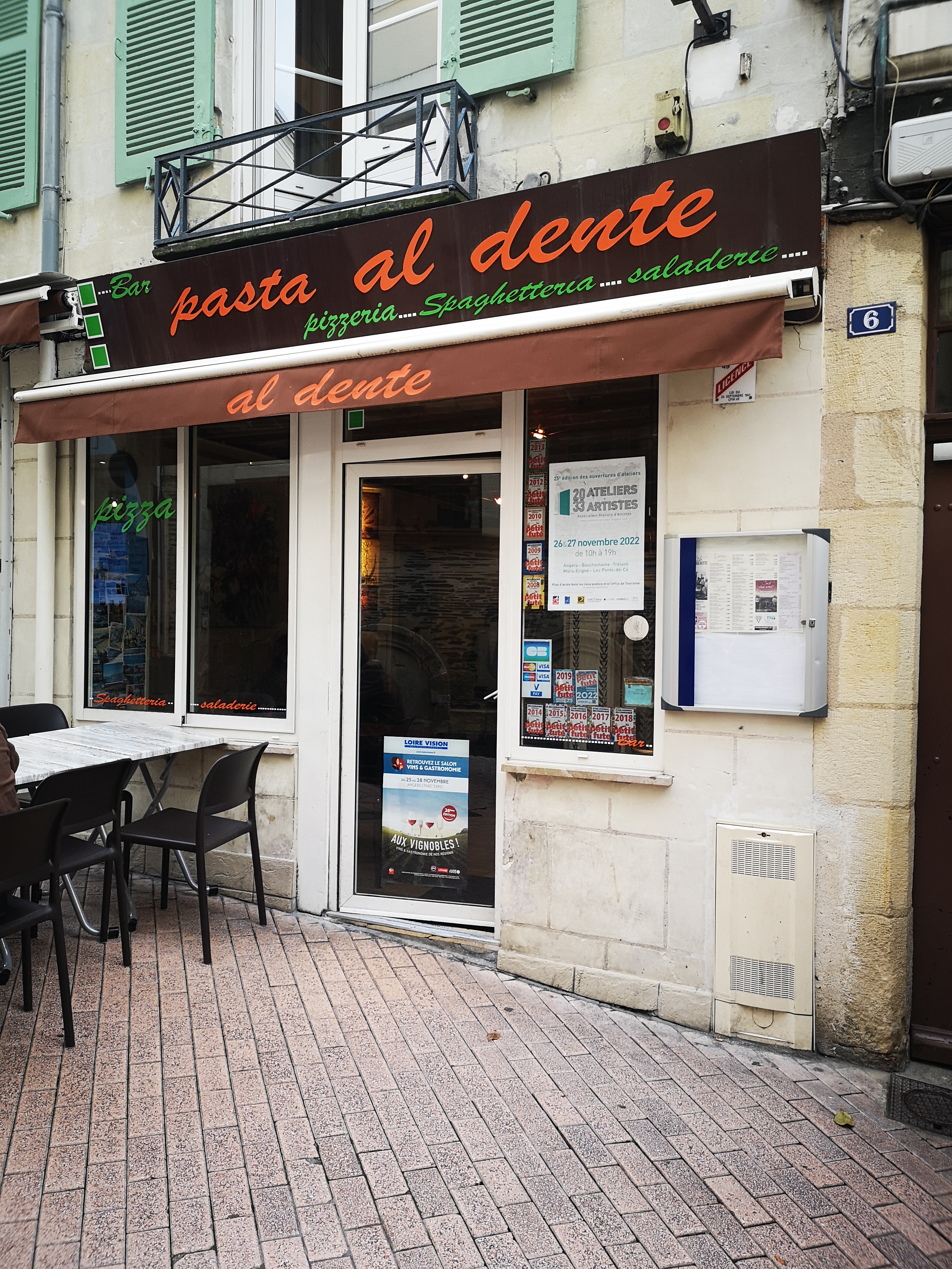 Voici toutes les informations sur le Restaurant italien Pasta Al Dente qui ce trouve au 8 Rue des 2 Haies, 49100 Angers (49). Sur cette fiche vous trouverez les photos, l'adresse, les horaires d'ouverture, le numero de téléphone et les avis clients.Vous pouvez églement rédiger un avis si vous le souhaitez en bas de page.