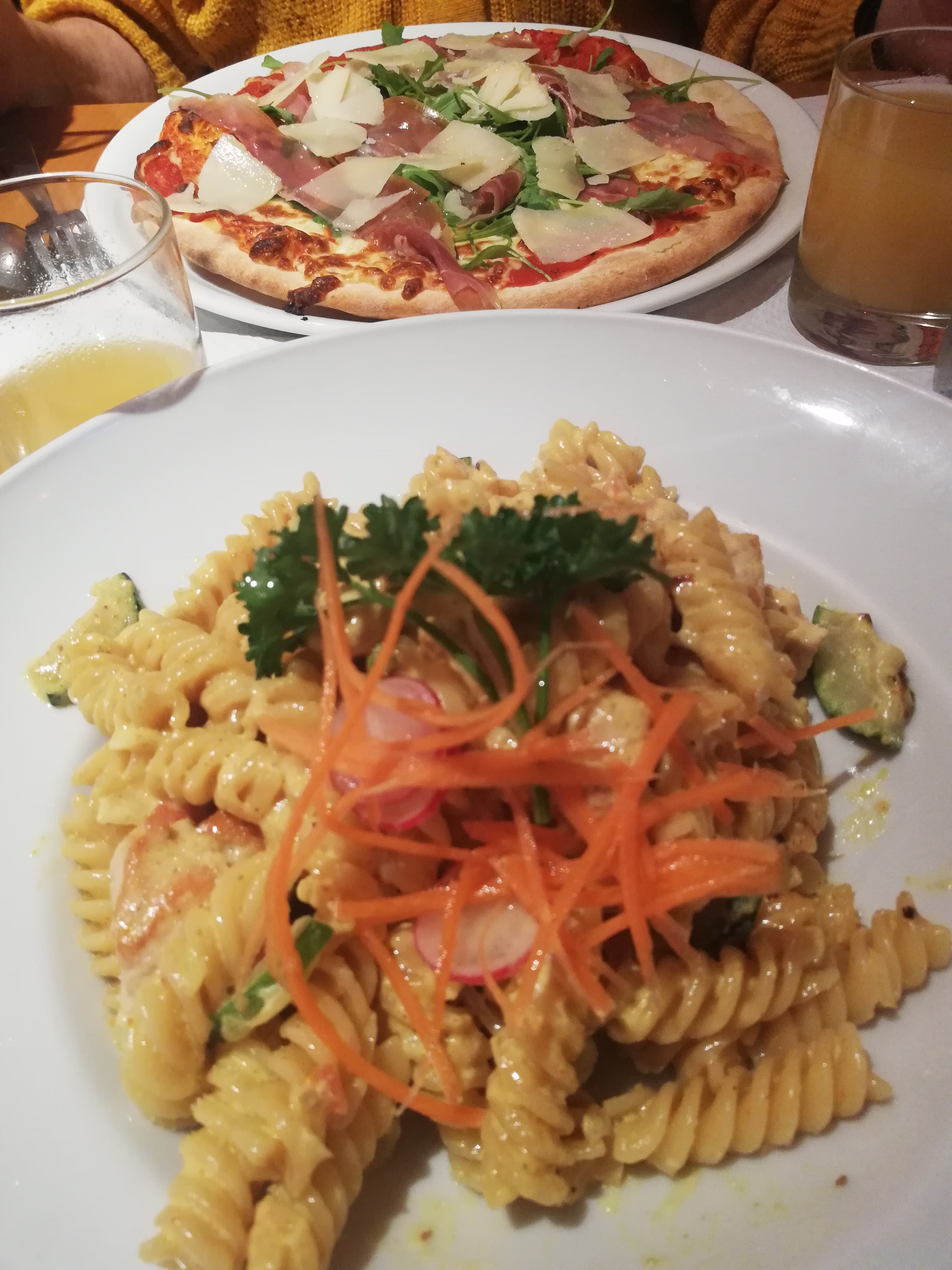 Excellent, nous avons pris des pâtes et une pizza toutes deux délicieuses. Le service est parfait, les serveurs sont très agréables.