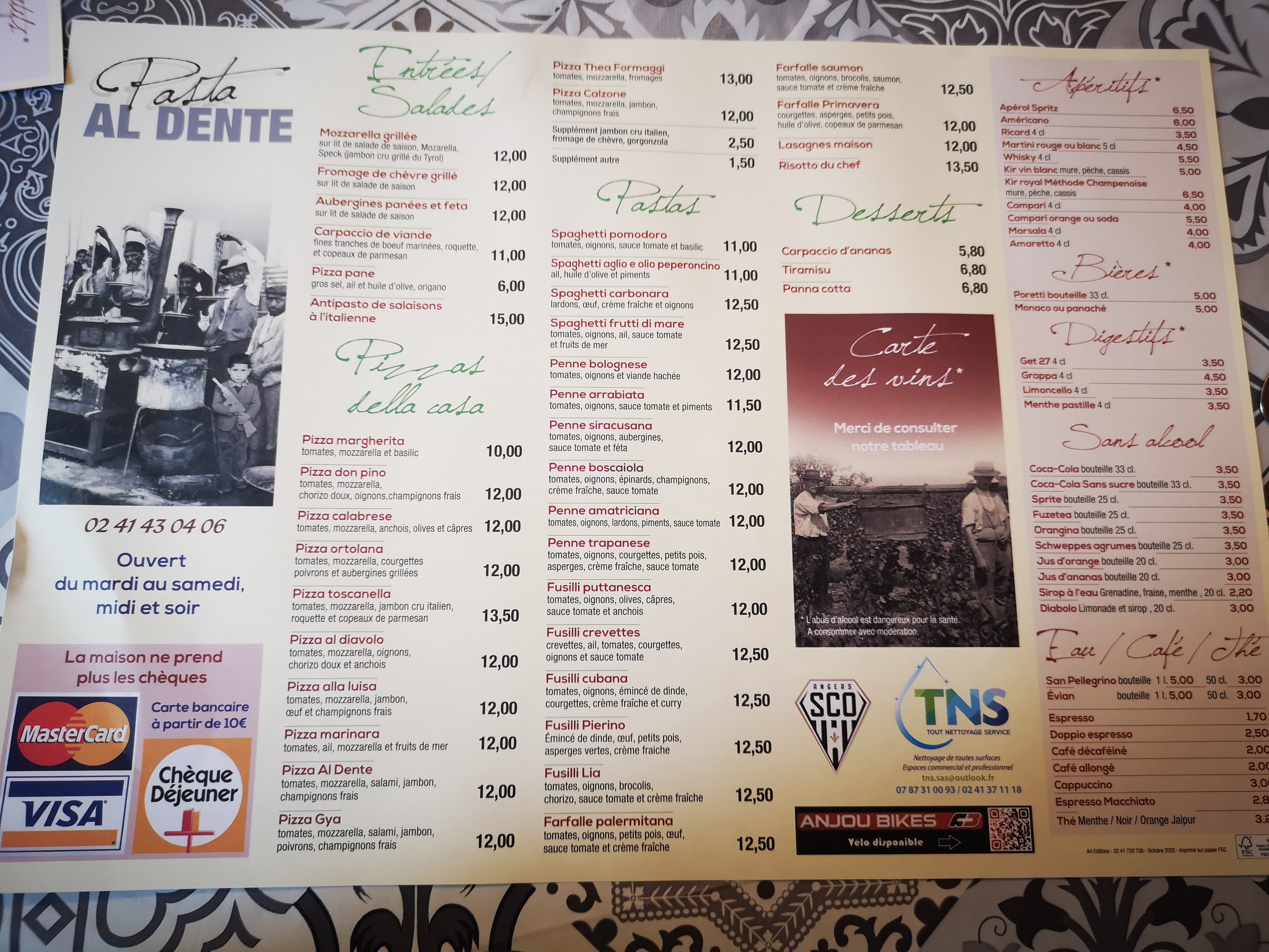 Très bon restaurant, le meilleur italien d’Angers selon moi. Serveurs très sympathiques également. Je recommande.