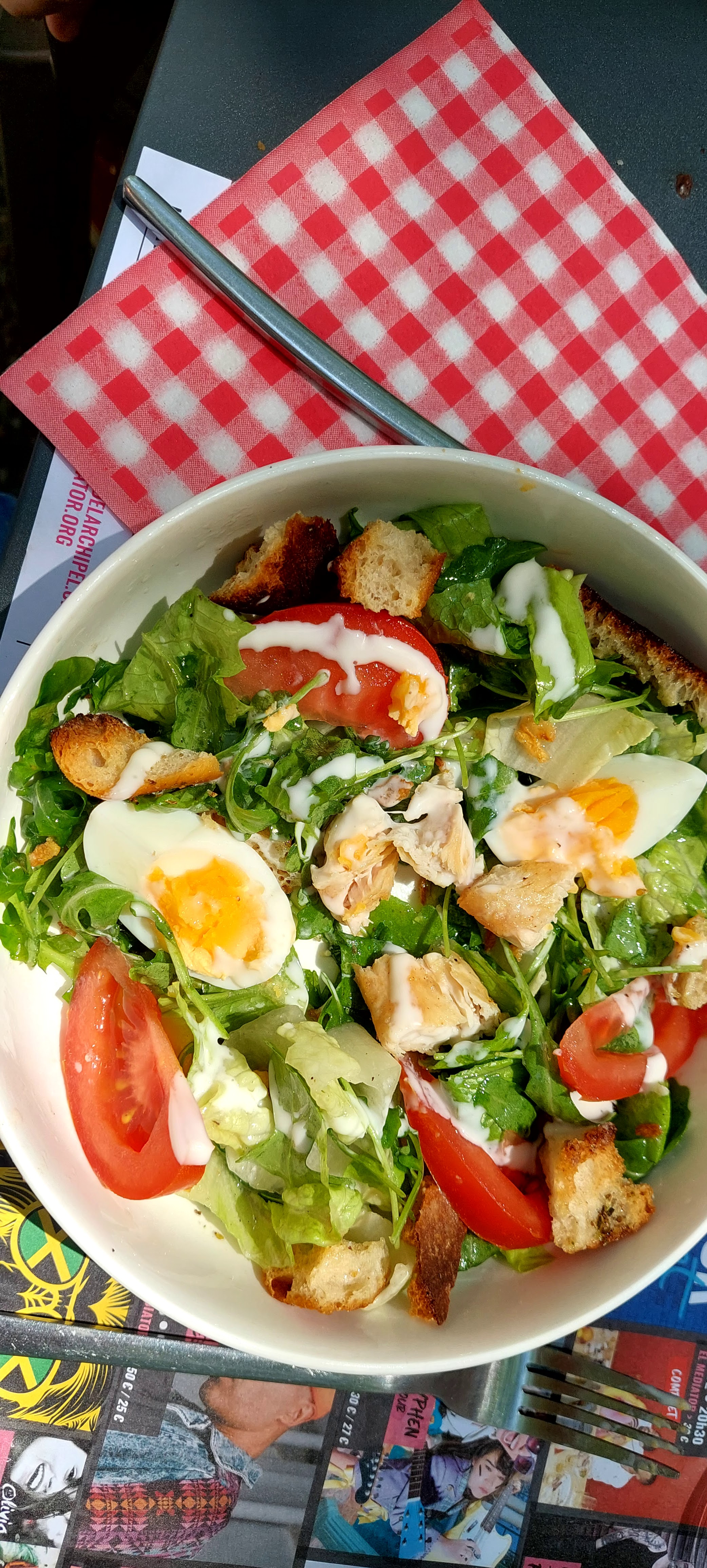 Après la manifestation nous sommes arrêté pour manger une petite salade. Qu elle déception 9 95 2 feuilles de salade et 3 petit bout de poulet, mon amie a pris des pêne sauce carbonara on cherche la crème et les lardons. Obligé de réclamer l'eau et le pain .Service très long aucune considération pour les clients que l'on laissent planter debout au milieu des table . A éviter......