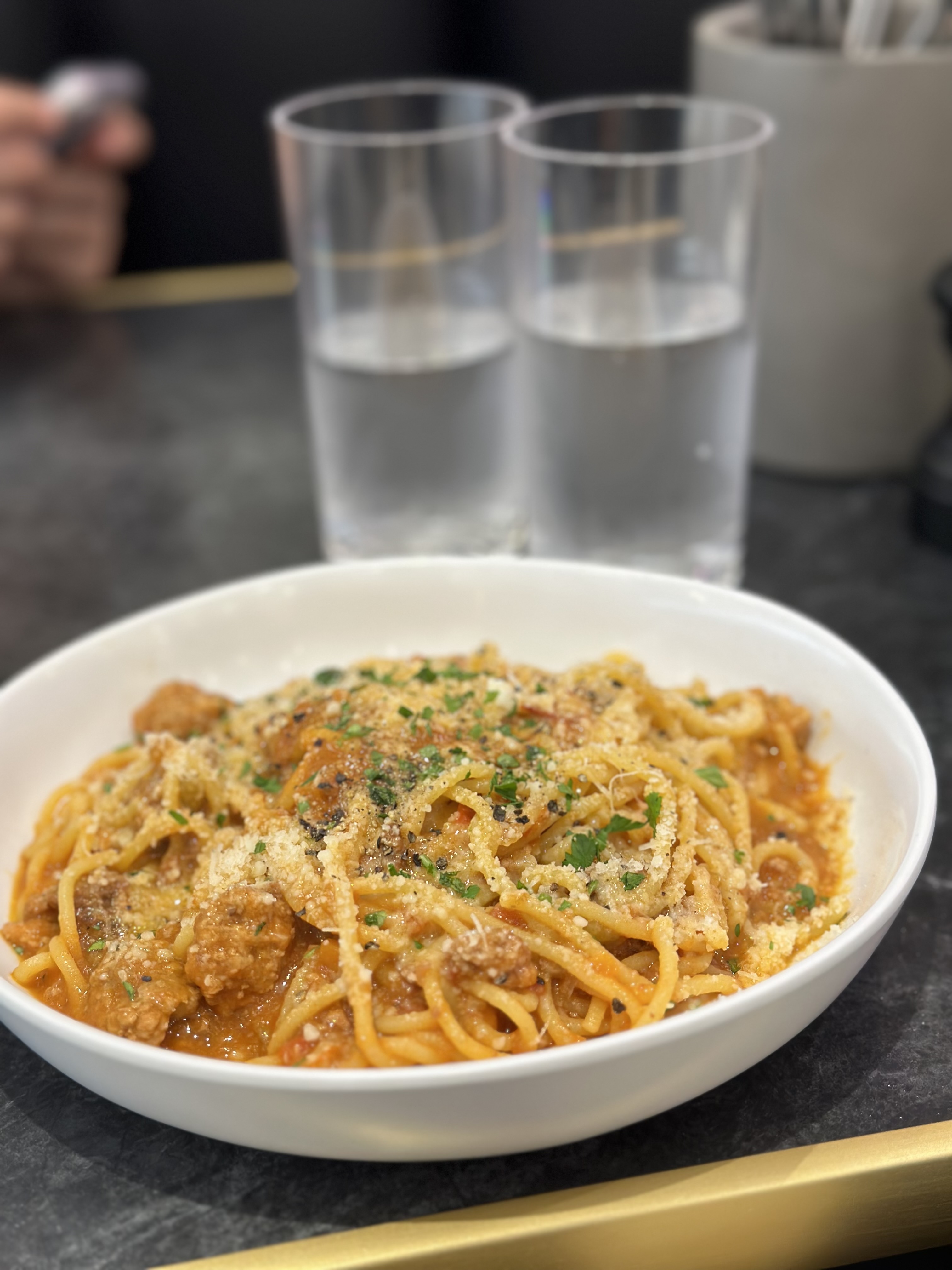 Très bonnes pâtes à la « Vodka Sauce » mais c’est assez cher pour ce que c’est. Je n’y retournerai pas !