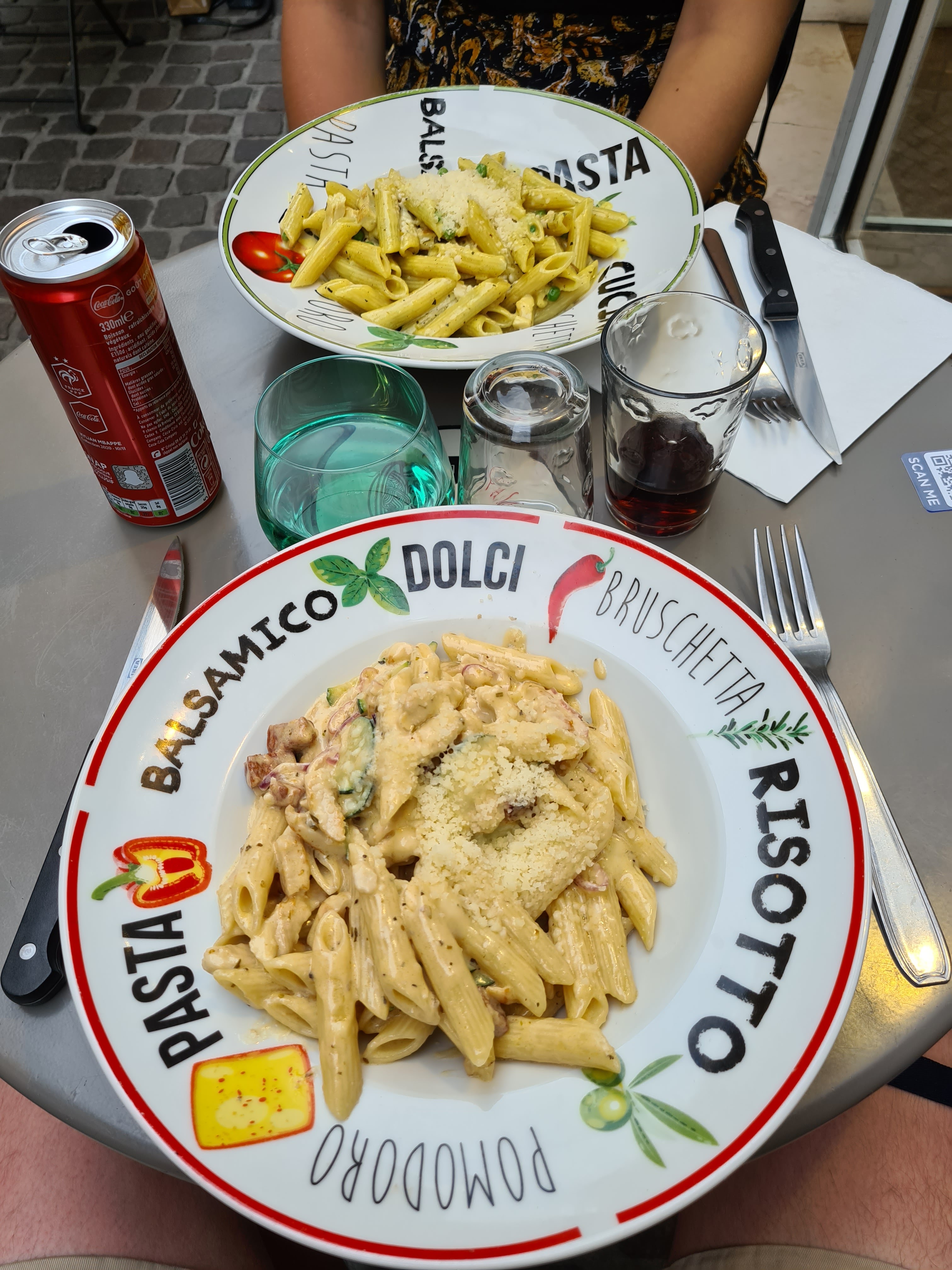 Un joli petit restaurant, situé dans une jolie zone piétonne. Il y a beaucoup de monde le soir, il faut donc y aller avant 21 heures pour être sûr d'avoir une table. Nous avons essayé les lasagnes et les pâtes du chef. Les lasagnes étaient bonnes, mais les pâtes étaient vraiment très bonnes, la sauce qu'ils y mettent est folle, vous souhaiteriez ne pas en arriver au point quand vous la finirez. Le personnel est sympa, les prix sont bons par rapport aux voisins. Apprécier!