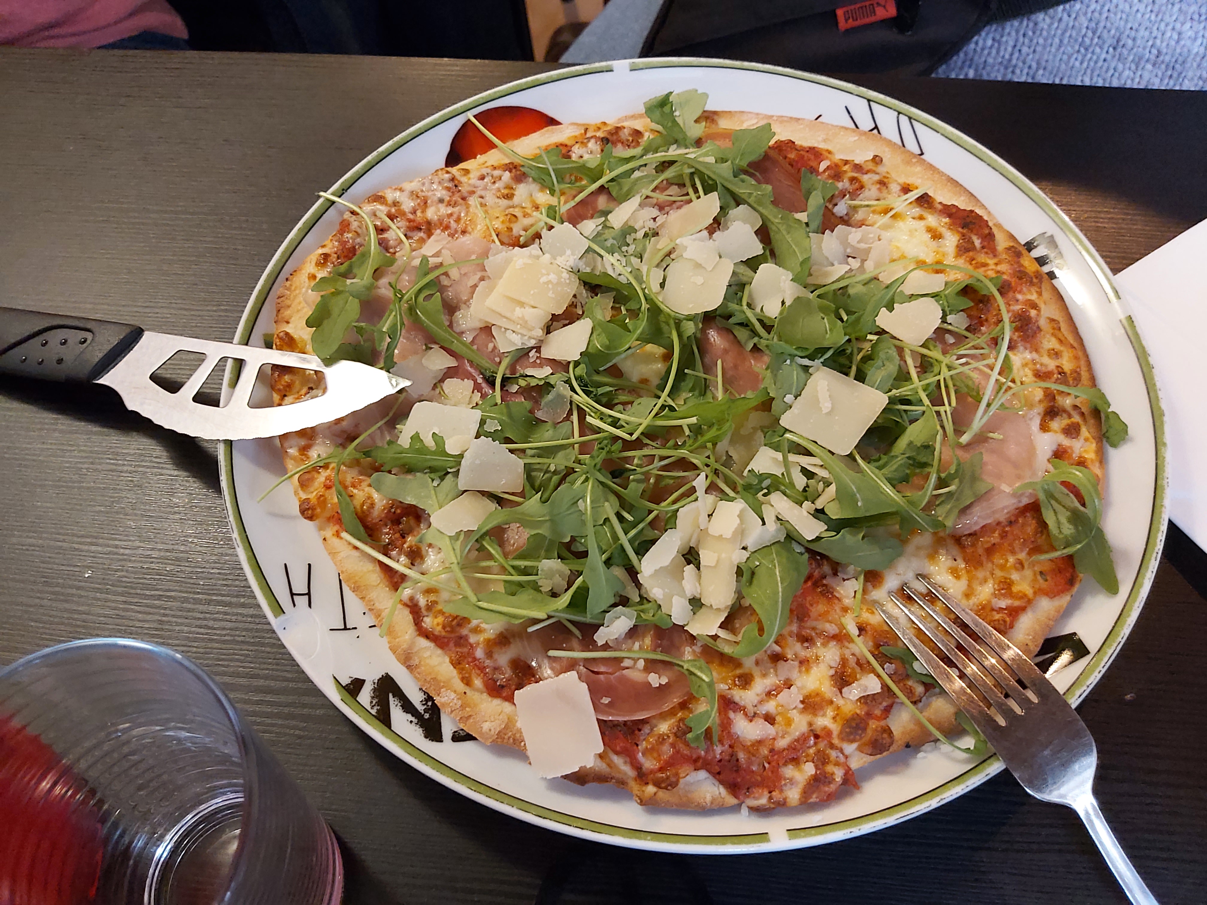 Petit restaurant italien cosy, jai commandé une pizza magherita, pour sûr faite maison, pâte fine. Cependant, la base tomate était sûrement un peu trop cuite et pas au goût de tout le monde. Pâte chargée de quoi vous rassasier. Moment sympathique entre copines essayer une fois !