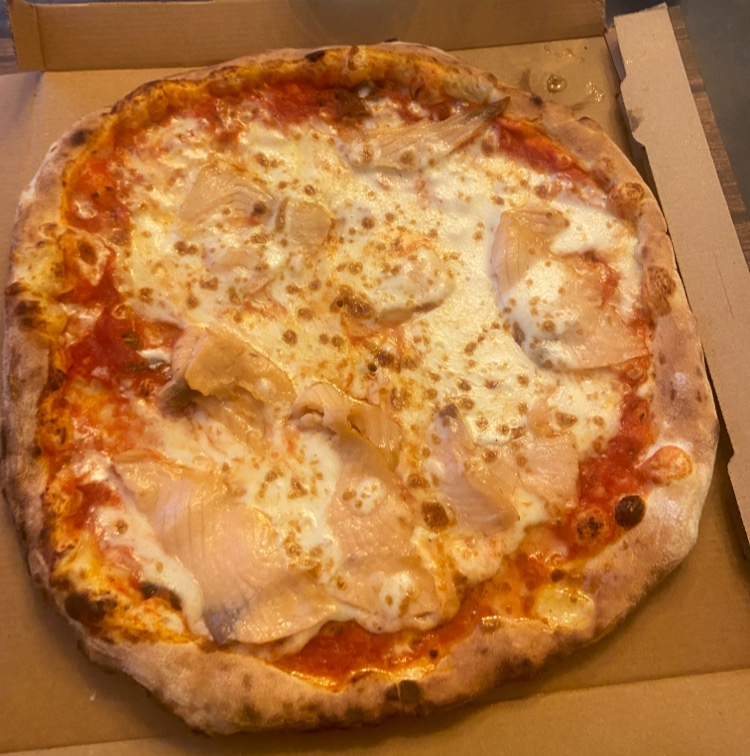 Agréablement surpris. Grande pizza et bien garnie (y a qu'une taille). 30 mn a 40 mn d'attente quand j'y etais mais pas de regret.