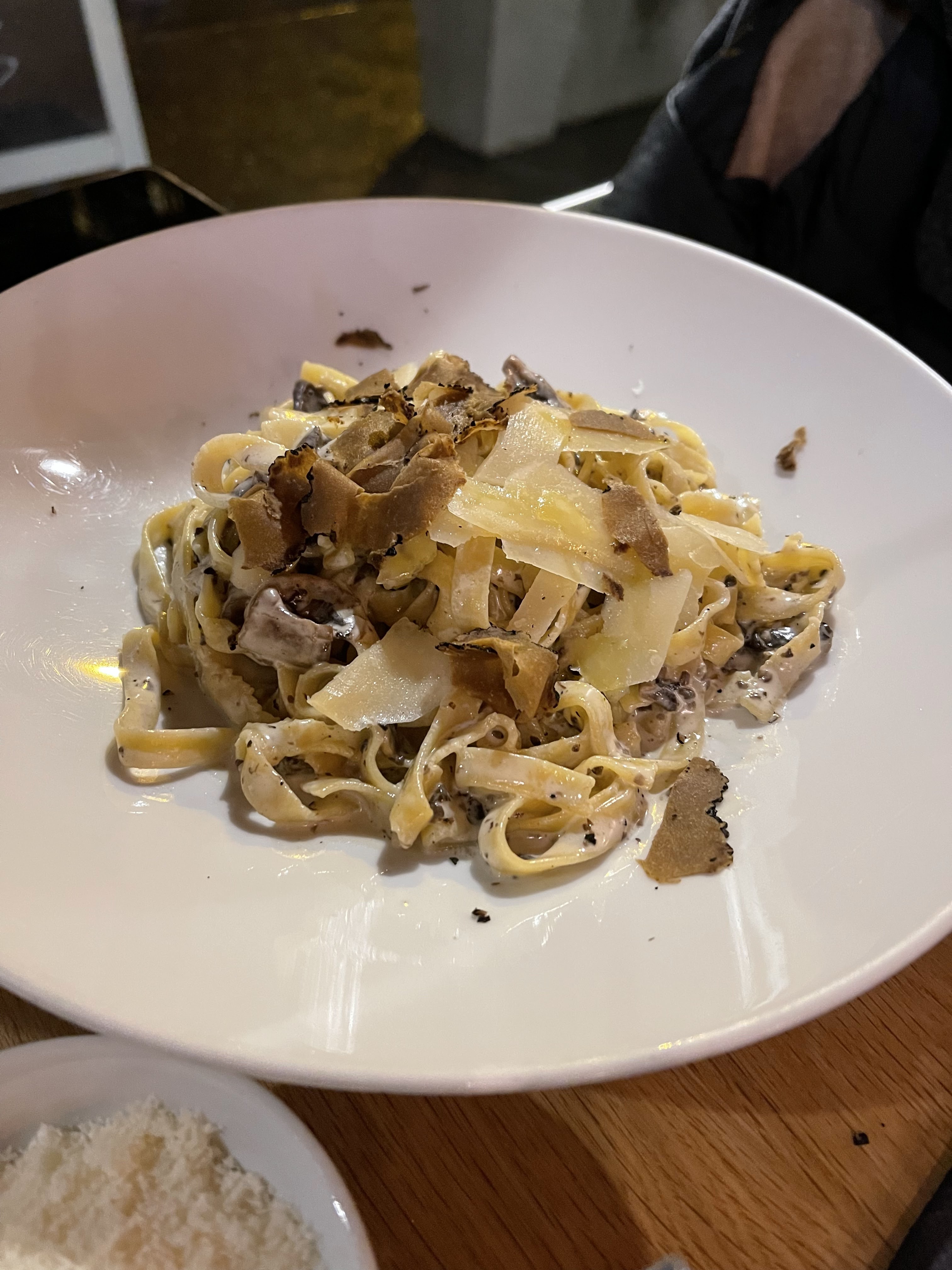 Je m'attendais à mieux niveau cuisine: tagliatelles à la crème de truffe pas très bien dressée et à moitié remplie où on sent plus le goût des champignons que de la truffe... pour 21€ ça pique.... je suis resté sur ma faim, dommage.