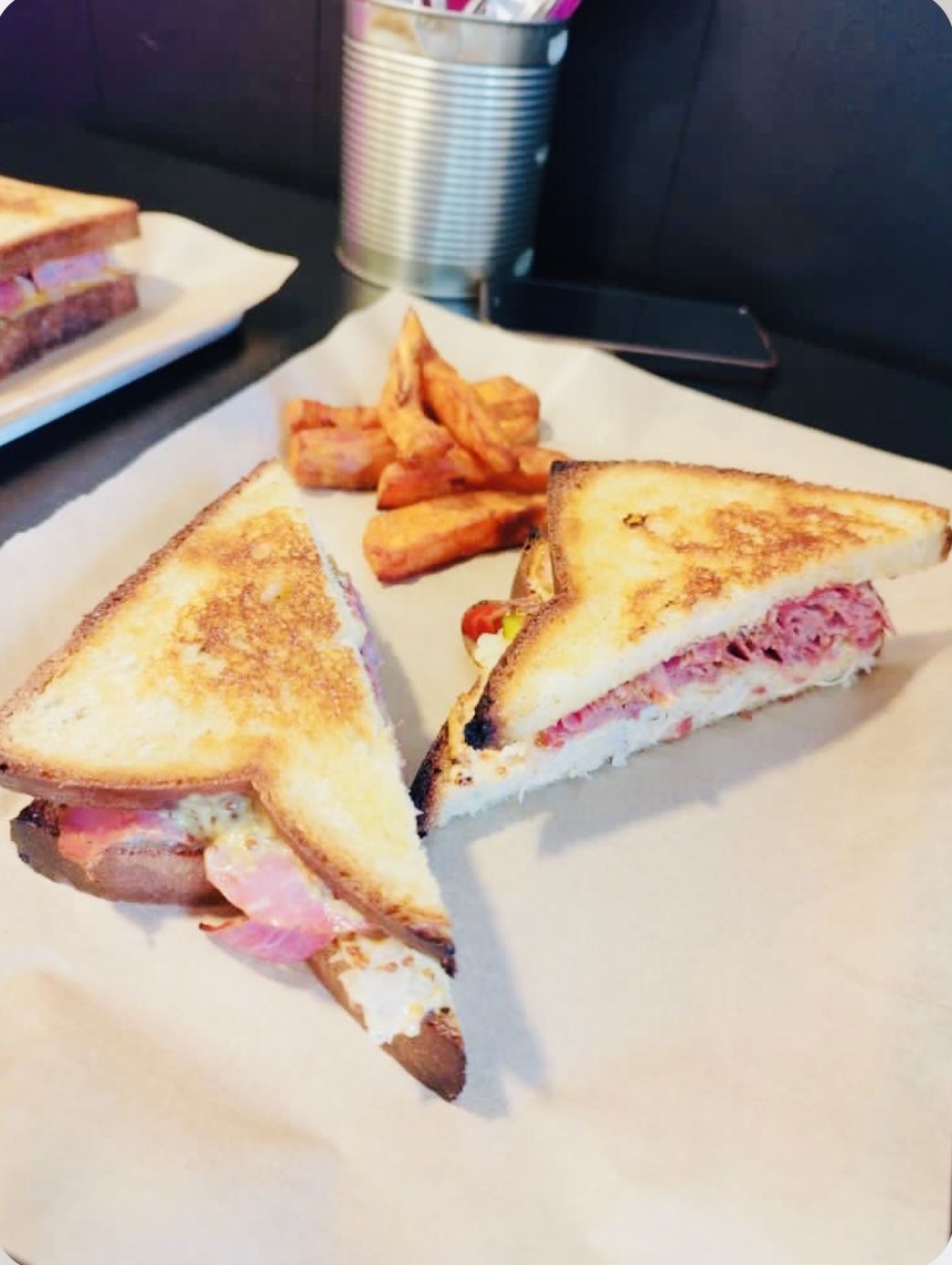 Ne connaissant pas le pastrami, j'ai été vraiment agréablement surpris de ce sandwich. Côté ambiance, déco, c'est à l'image du patron et rend cet endroit original. L'accueil est au top, je recommande fortement et pour le tarif, qui peut paraître chère à première vue, vous en aurez pour votre argent. Je recommande fortement 🤟