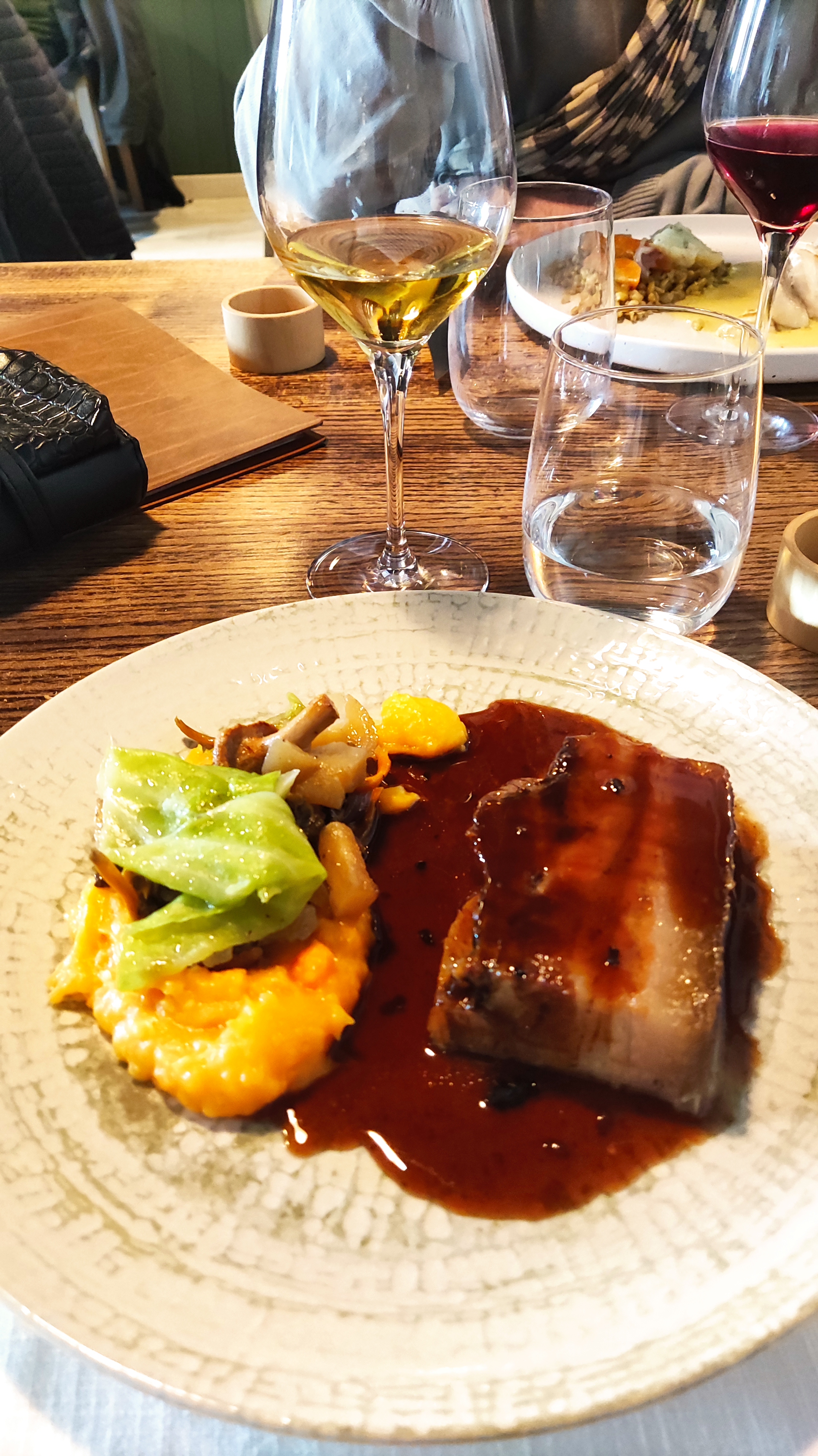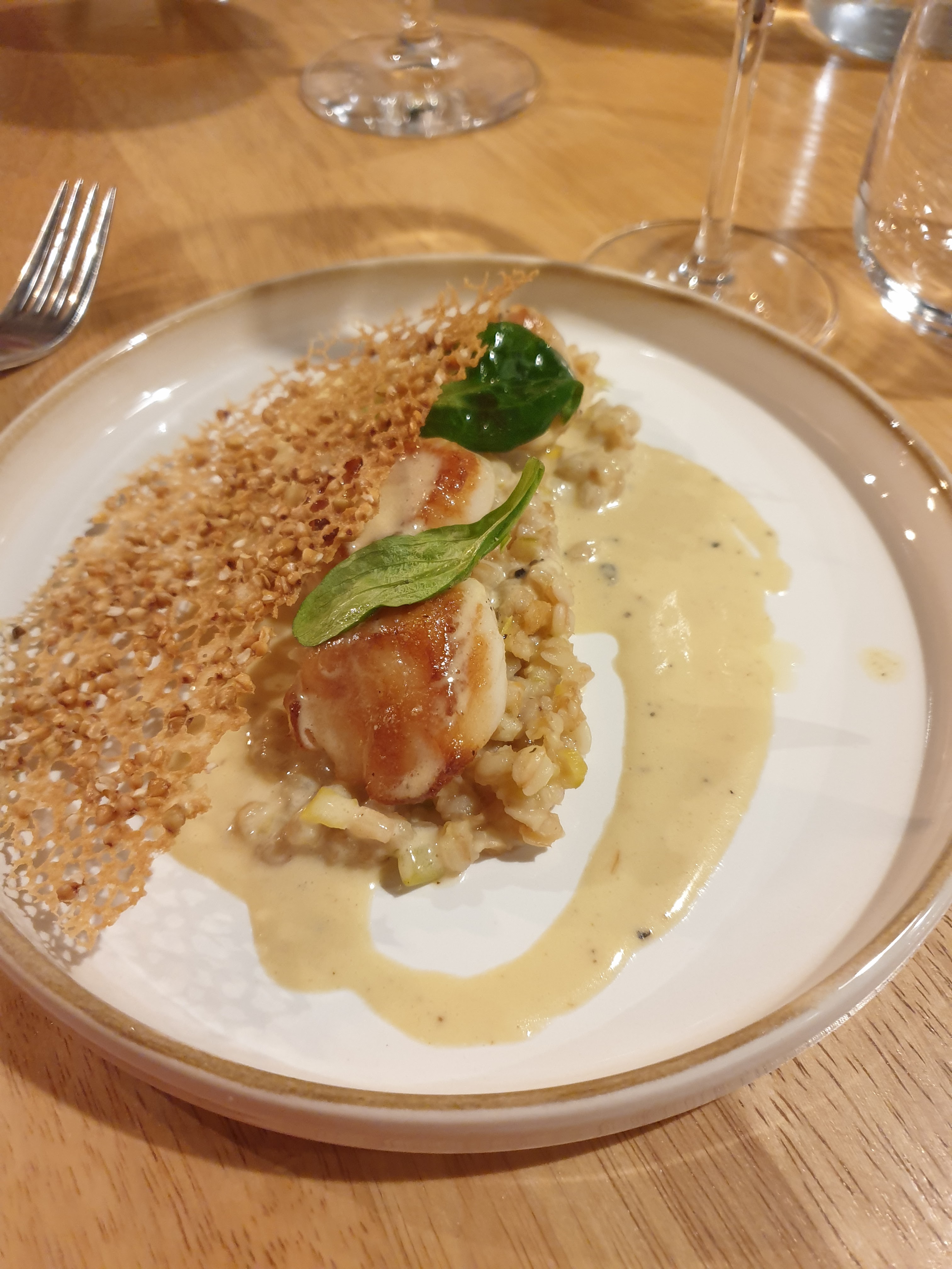 Nous avons mangé ici pour le déjeuner - et quel délice. Le chef a un très bon toucher avec ses sauces. Ils complètent parfaitement le repas. La suggestion de vin était également parfaite, donc dans l'ensemble, nous recommanderions certainement ce restaurant.