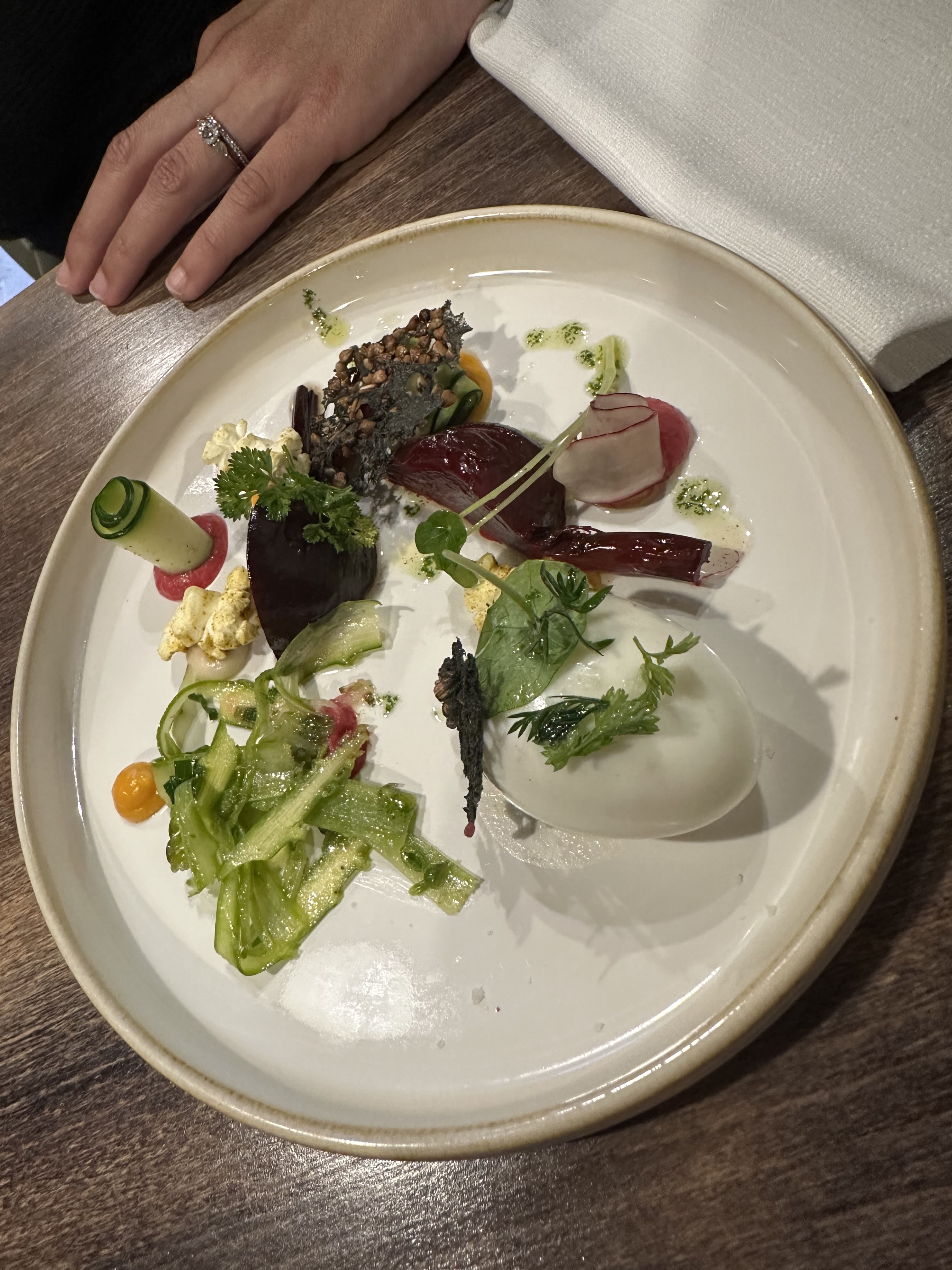 Belle expérience gustative ! Des produits frais, des assiettes fort jolies, des mets exquis et des associations réussies. Le prix est cohérent.