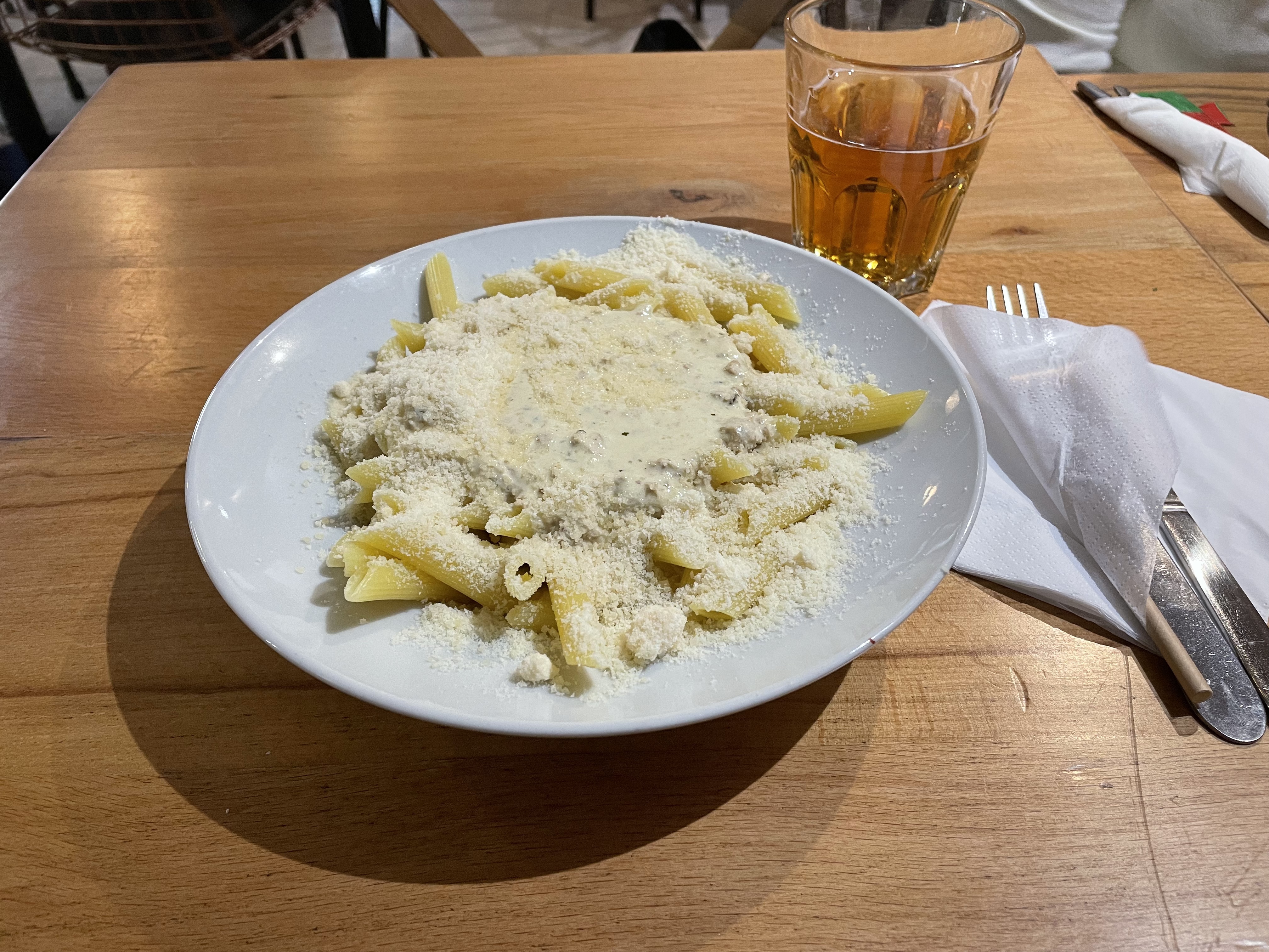 J’ai goûté les pâtes cheezy et une autre sauce crème avec des champignons ail , incroyable les meilleurs pâtés à Strasbourg et les plats sont servis à une quantité généreuse !!
