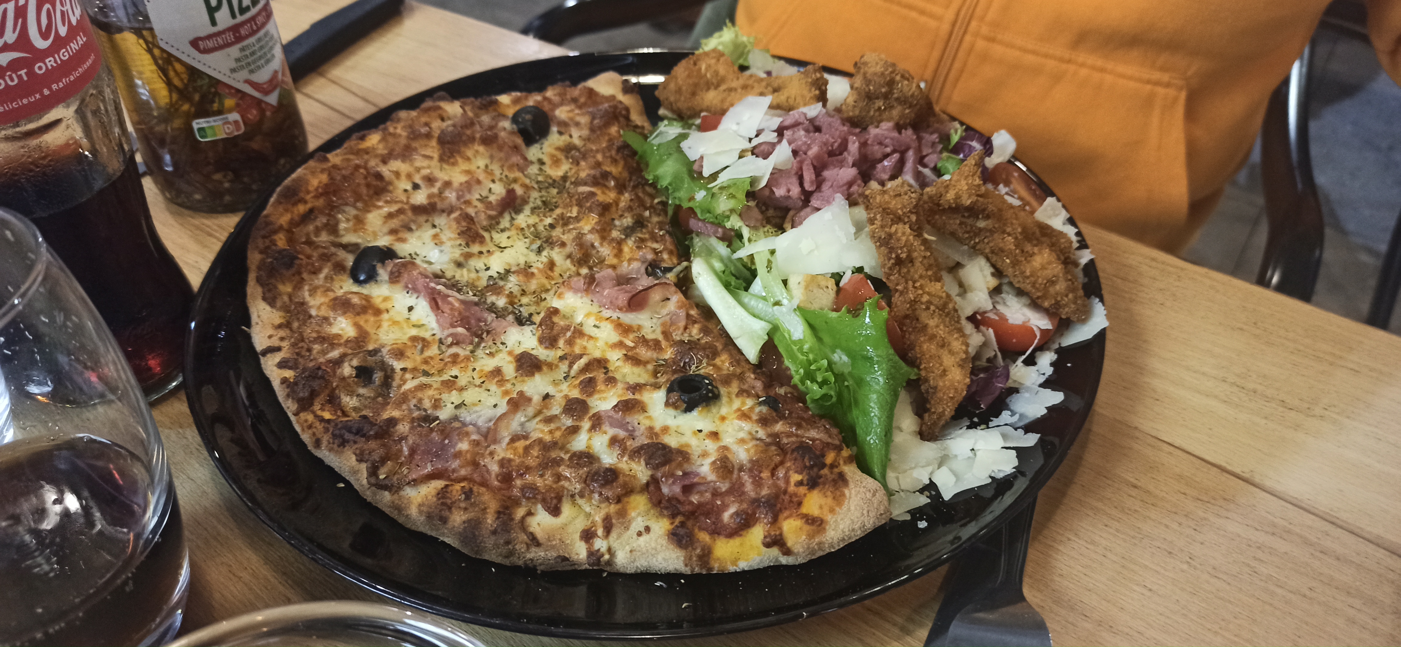 Le cuisiner est super sympa, les plats sont plutôt bon. J’avais pu goûter une pizza et salade qui était très bonne, j’avais pris des pâtes au saumon qui n’était pas top top un peu fade. Le cordon bleu maison est pas mal aussi.