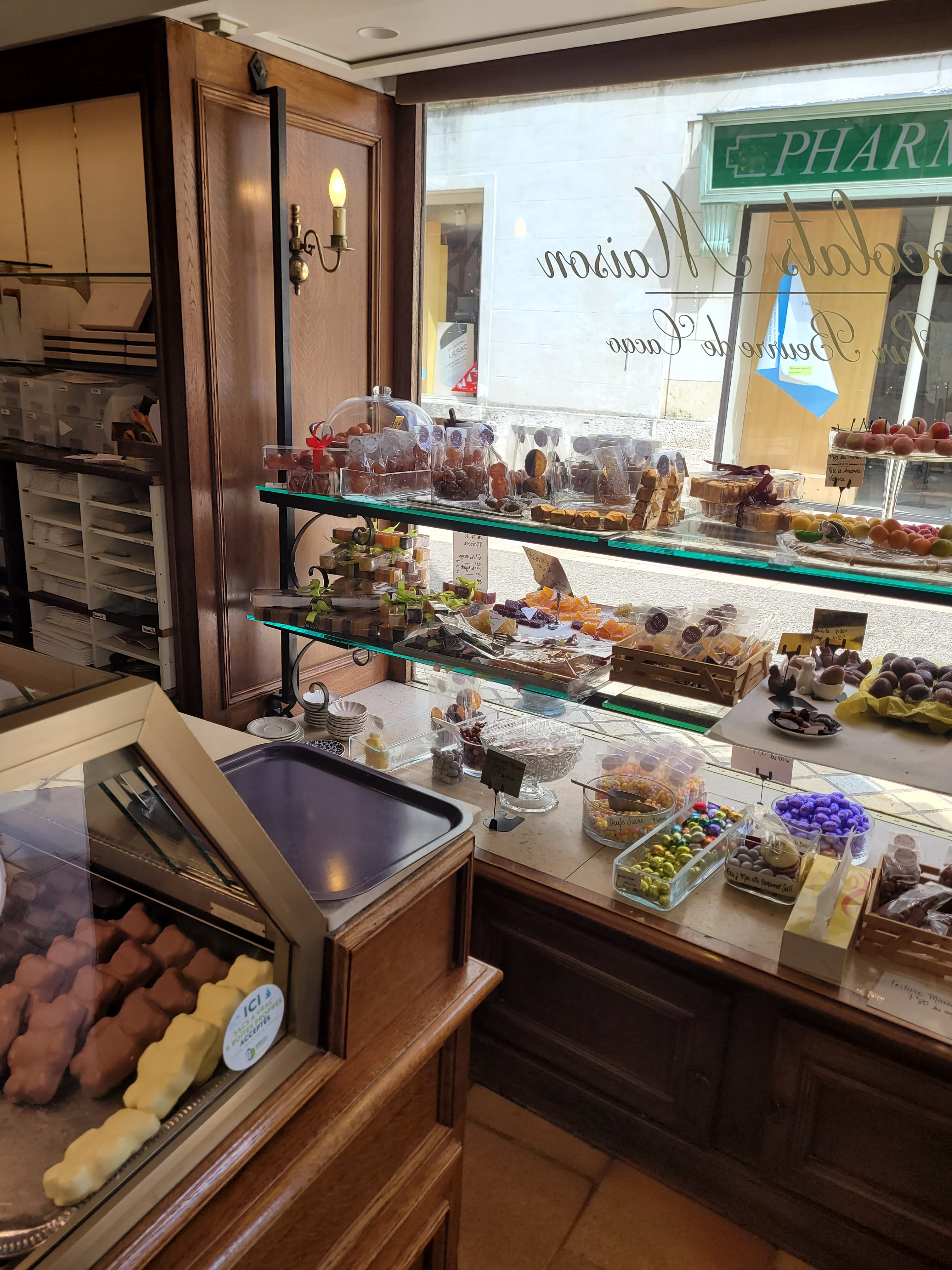 Certe les chocolats sont très bons ! Les pâtes de fruits pas si bonnes...ils profitent de l'accès proche château mais avoir l'impression d'embêter foncièrement la propriétaire qui souffle et parle en grimaçant, pour cette enseigne, c'est une honte ! Passez votre chemin. la qualité et la bonne humeur se trouvent un peu plus loin