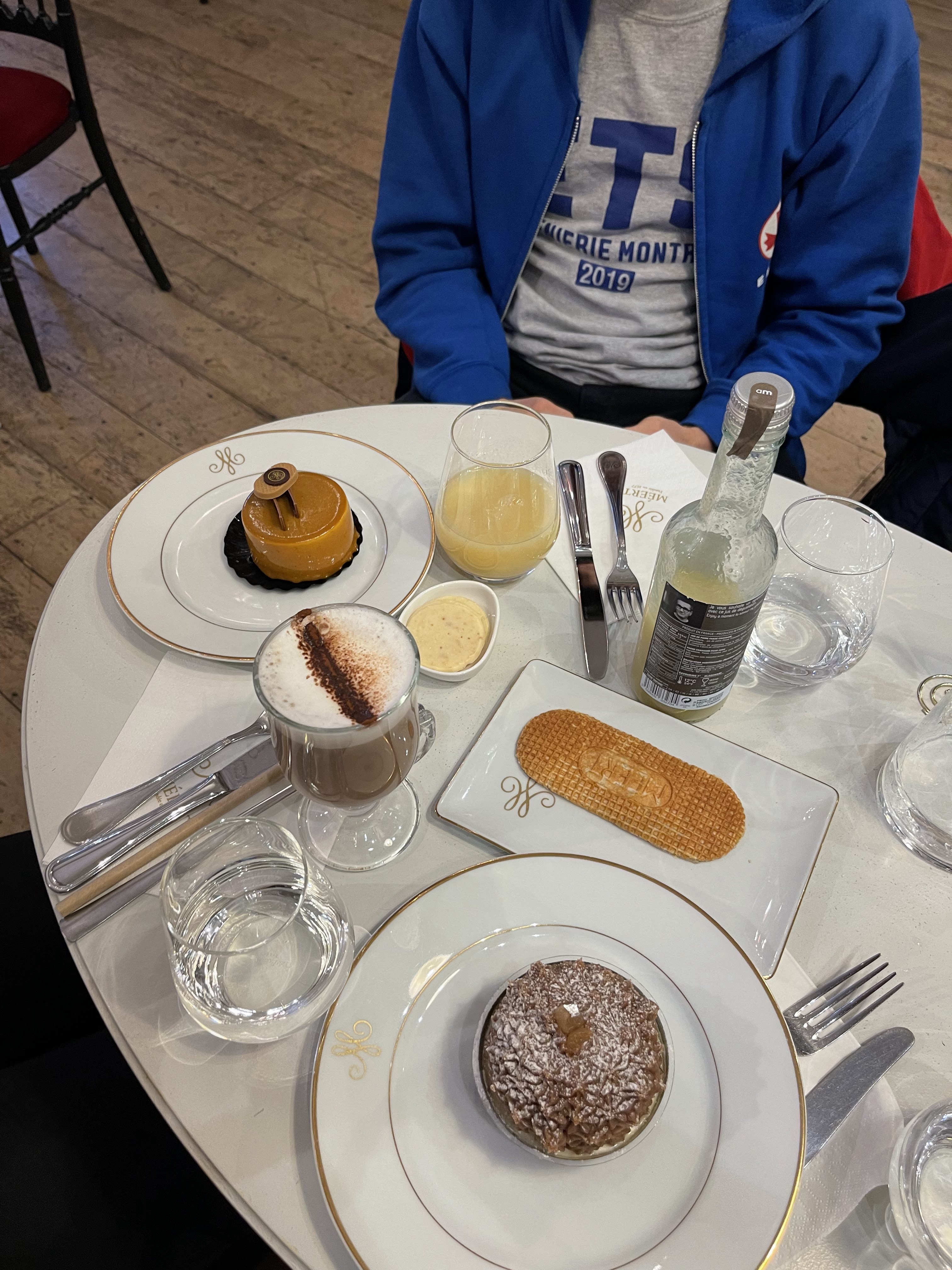 Nous avons demandé une table pour 4personnes. Pour un petit déjeuner, au alentours de 11:30 et il nous on dit oui d'accord. Rentré au restaurant à 12:00 assis et installé sur une table mouvante au premier étage après demande de petit déjeuner ils nous dissent que le pour le petit déjeuner est trop tard. Donc nous commandants des pâtisseries et ils nous disent que nous devant descendre pour aller manger chez les pauvres au RDC, près des personnes qui font la plonge. Sur le trajet le sol était impropre et sale et mal entretenue. Le WC des homme est une catastrophe des plinthes de sol décollés, des carrelage qui tiennes je ne sais pas comment le pipi par terre, une des filles à commandé de l'eau et la serveuse avec le duvet sous le nez, lui sert une bouteille de 1L d'eau. Une fourchette avec un poil collée Avec tout le renommé qu'ils ont et tout l'argent qu'il ce font c'est une honte pour leurs héritage. Service et restauration de meer*e. Merci pour les pâtissers et leur travail très correct.