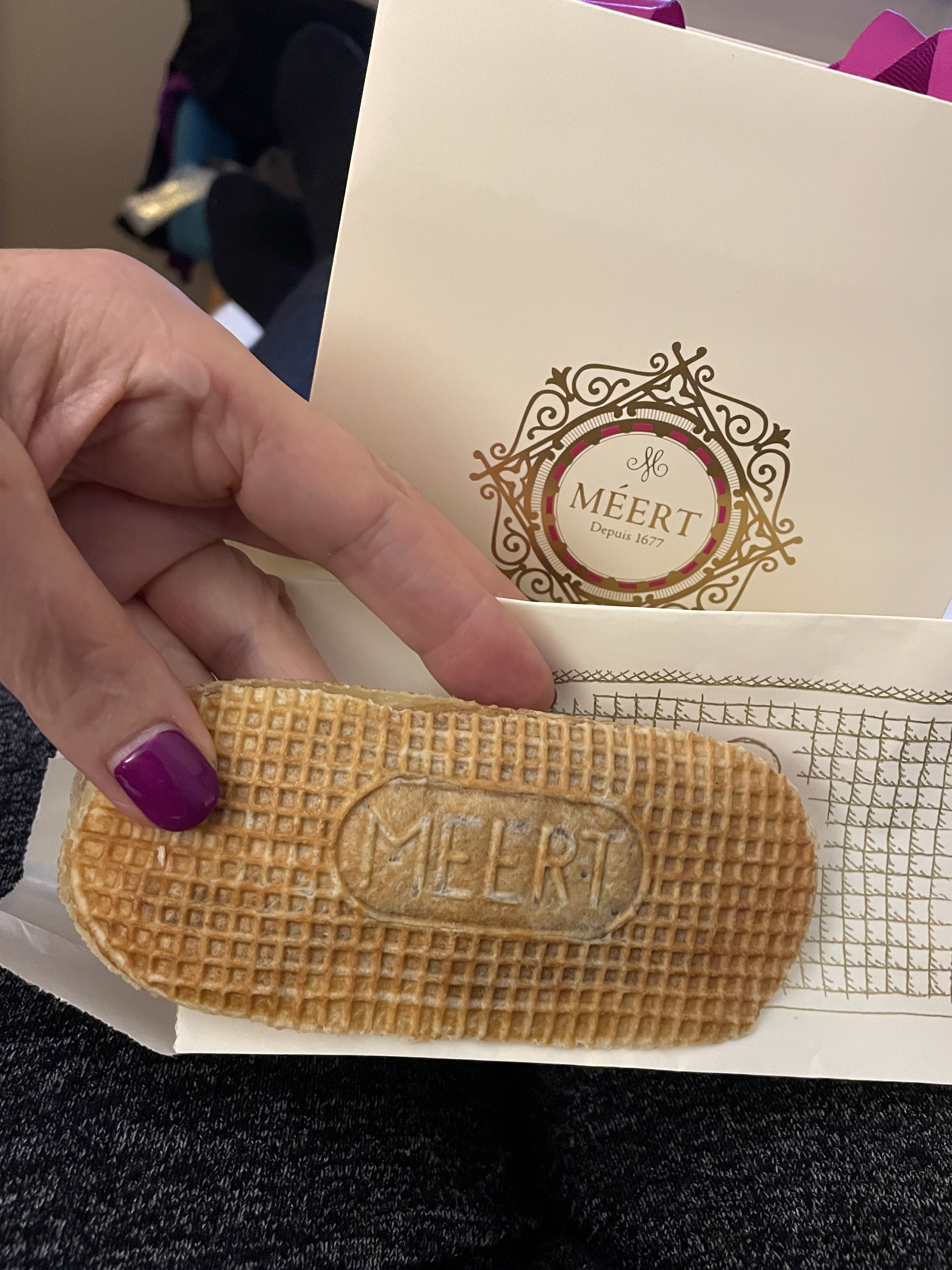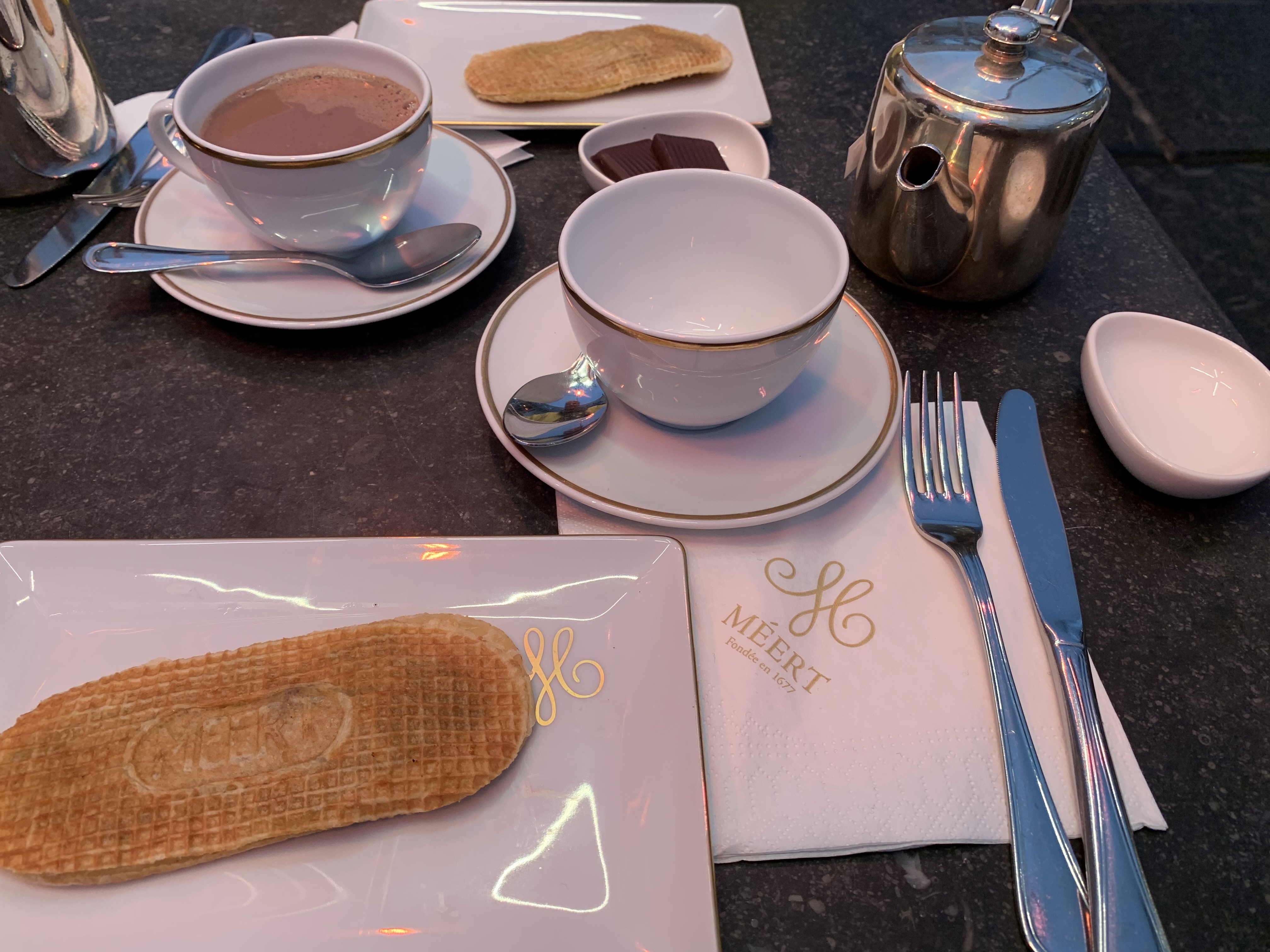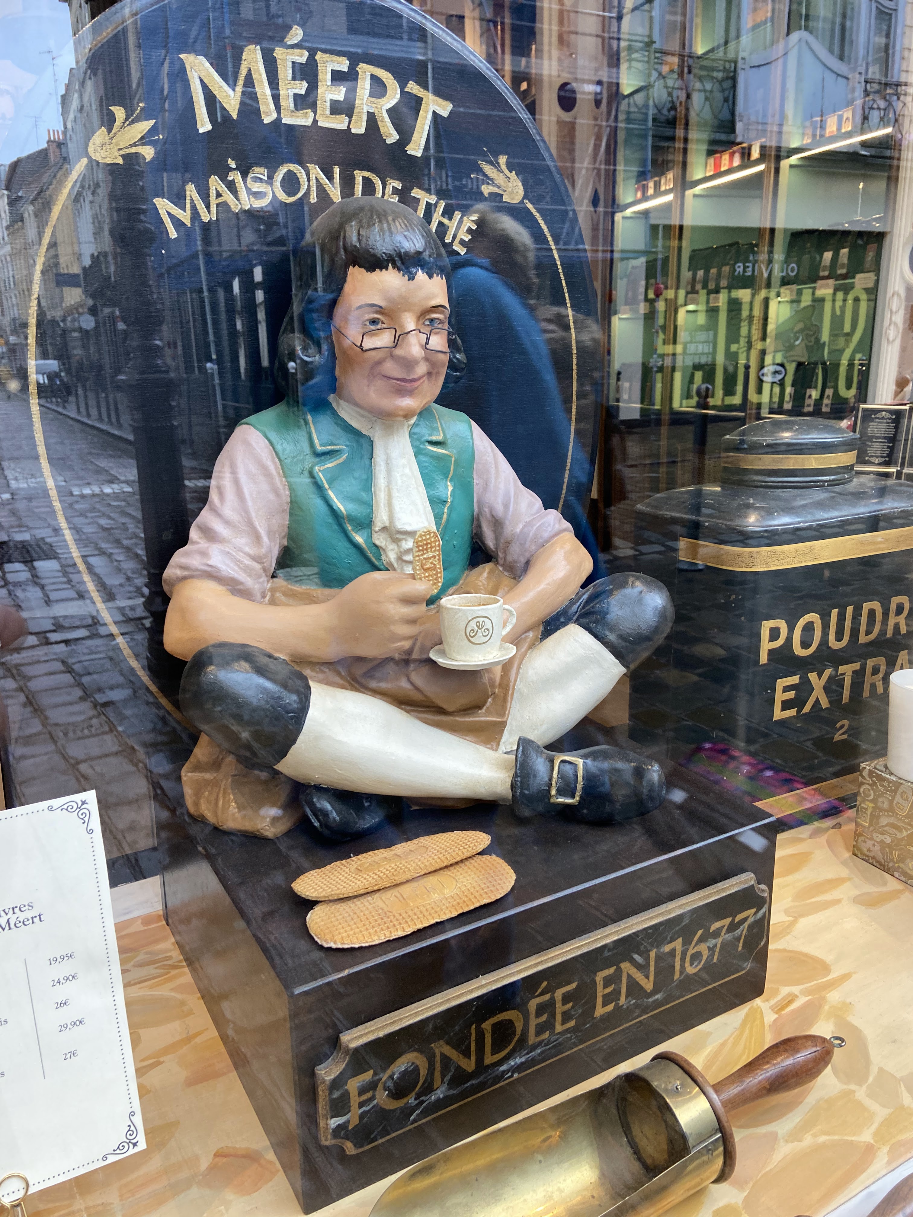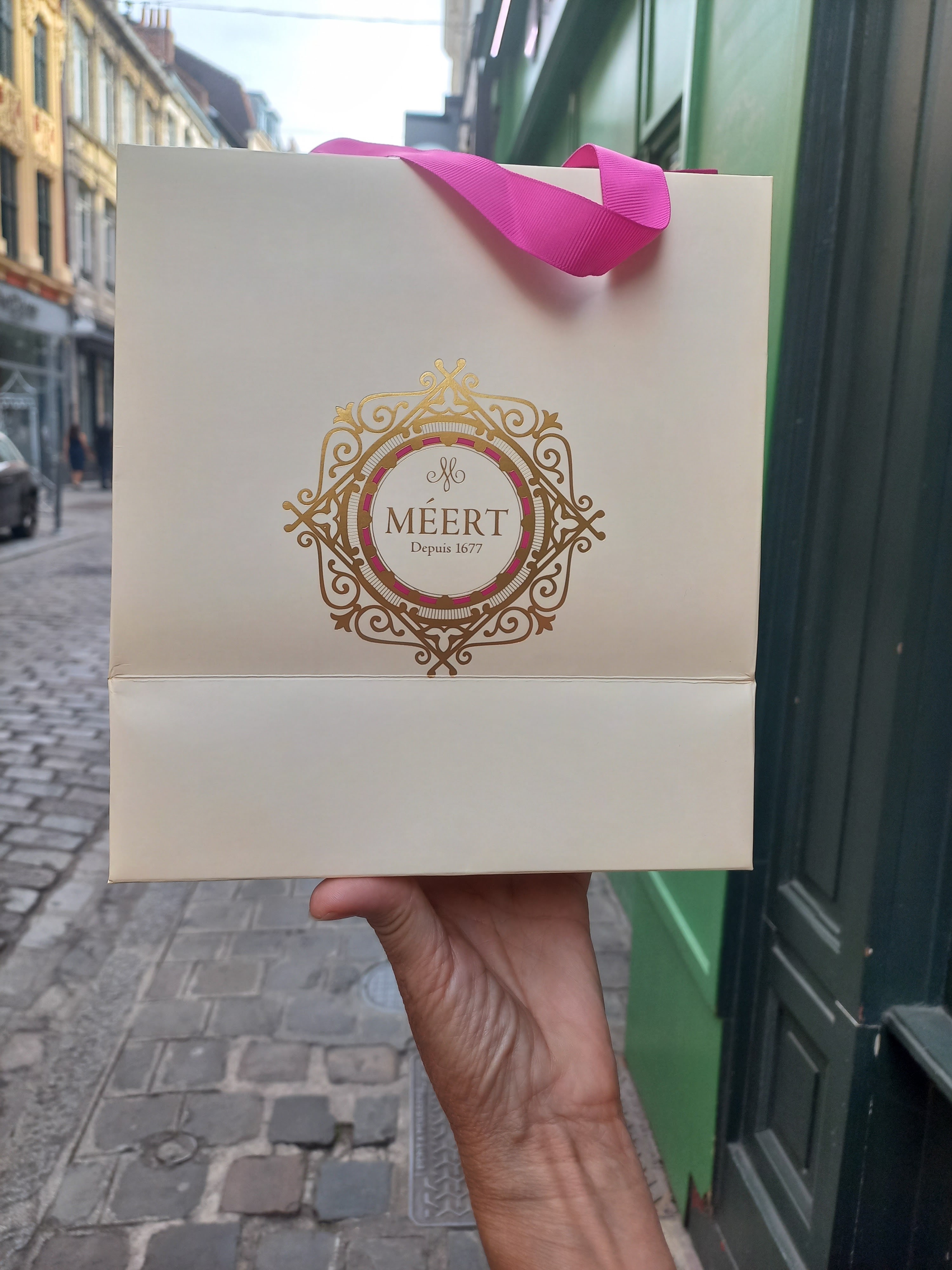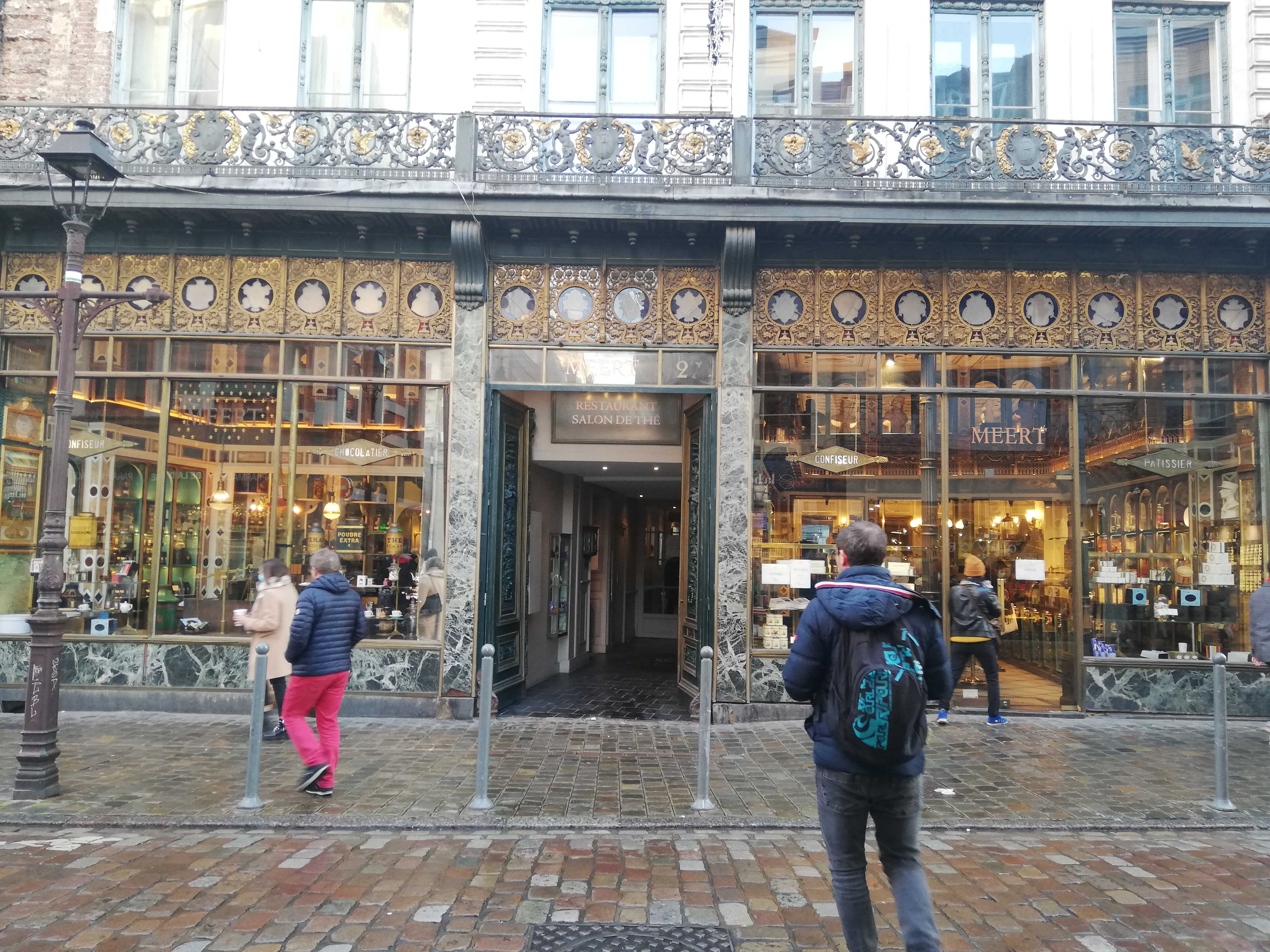 Une institution locale a vu le jour en 1607 au cœur de la vieille ville de Lille. Boulangerie-pâtisserie en 1677, elle fut reprise par le confiseur et chocolatier M. Delcourt. Je n'ai pas réussi à réserver une table pour le thé de l'après-midi, mais j'ai plutôt acheté la gaufre spéciale et une boîte de chocolat. Les gaufres préférées de Sa Majesté le Roi Léopold Ier sont le produit phare de la Maison Meert.