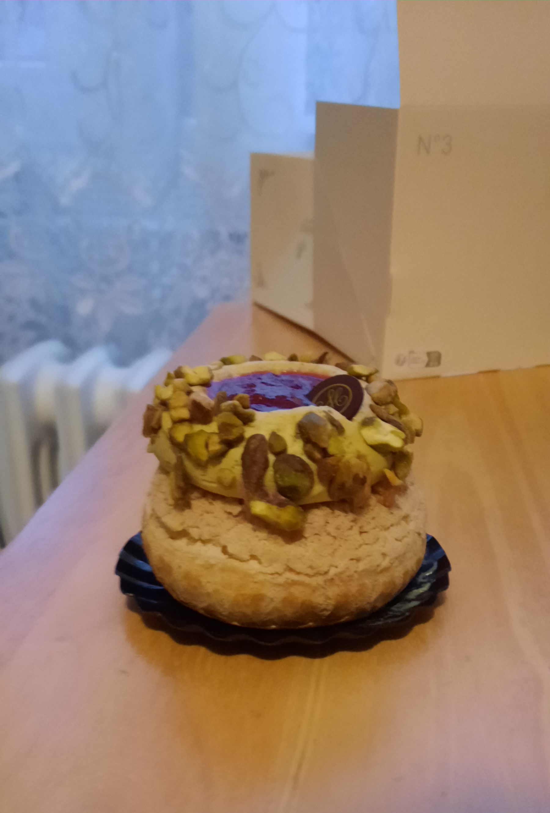 Autant la pâtisserie était vraiment chère, mais elle était délicieuse! Le choux pistache framboise très joli, avec de la vraie pistache qui coule à la découpe, un régal👌