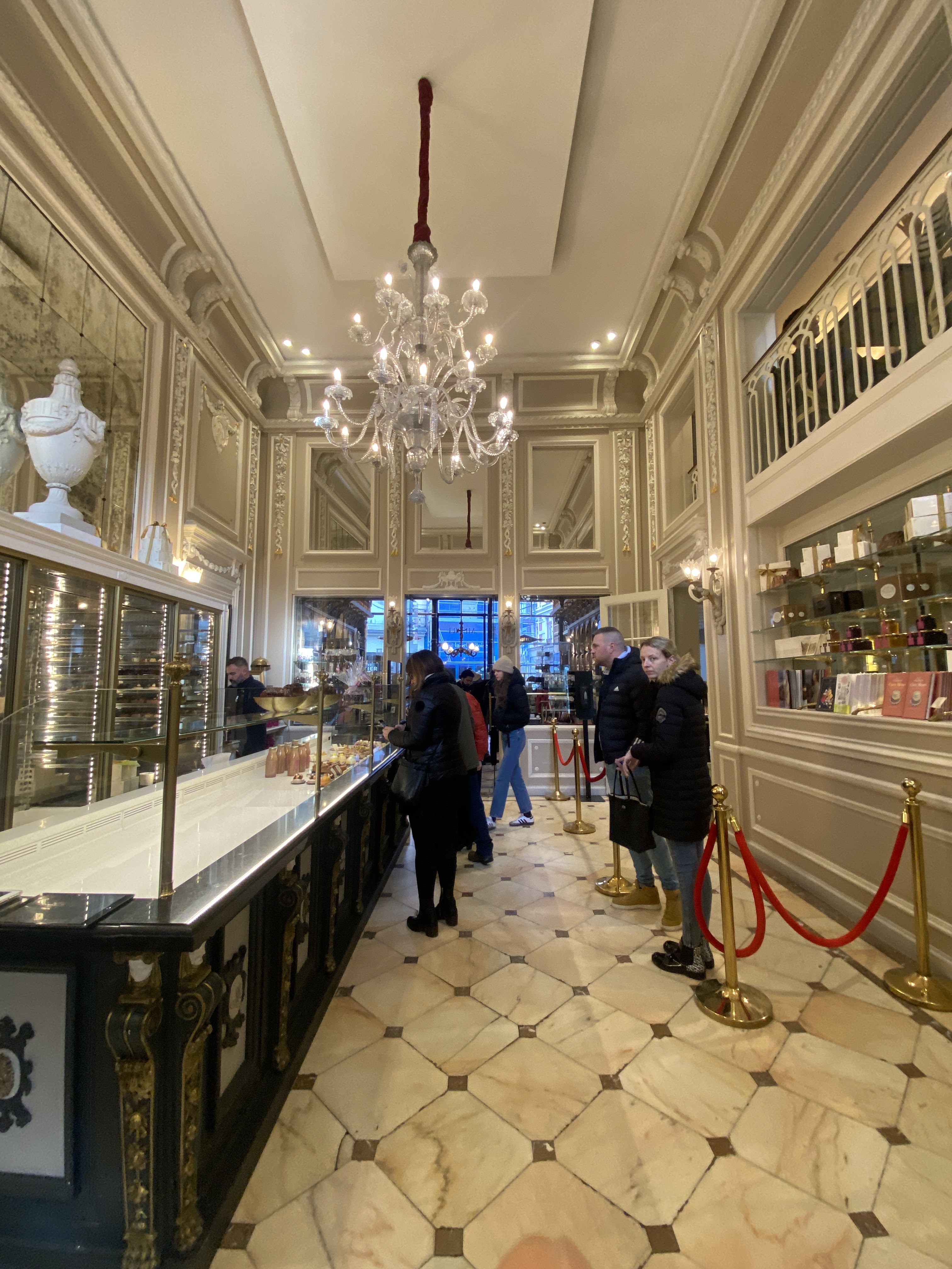 Un lieu magique qu'il faut impérativement visiter! On se retrouve un siècle en arrière. Tout est beau et raffiné. Le décor comme les pâtisseries. Le parfum de la vanille des célèbres gaufres est tout simplement envoûtant ! J'ai adoré cet endroit. Et apparemment, je ne suis pas là seule, car il y avait beaucoup de monde dans la boutique. Seul le salon de thé m'a un peu déçue. Je m'attendais à quelque chose de plus raffiné et de plus précieux. C'est en fait, une cour intérieure d'immeuble, avec un grand parasol, des tables et des chaises de jardin. Je m'imaginais un salon de thé plus cosy